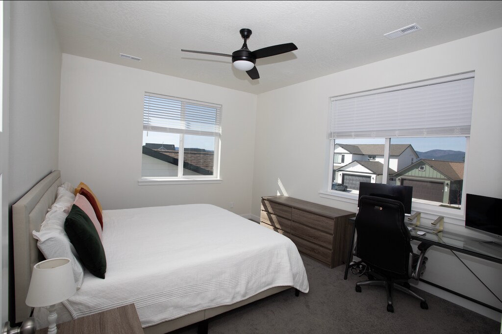 Property Id: 2442318 Unfurnished. 2023-built 4-bedroom, 2.5-bath home in the Parkllyn Estates neighborhood of Post Falls. 2,285 sq ft across two levels with an attached 2-car garage. Main level features one bedroom/office, an open great room with gas fireplace, luxury vinyl plank flooring throughout, and a kitchen with island, breakfast bar, walk-in pantry, and gas range. Half bath on the main level. Upper level has the primary suite with en suite bathroom, plus two additional bedrooms (one oversized) with carpet and a full bath. The fully fenced backyard has a patio, four raised garden boxes, and a children's play structure. Front yard is landscaped with an irrigation system. The lot backs to farmland with mountain views and sits in one of the quietest areas of Post Falls. Three parks within a few blocks. Treaty Rock Elementary is a 2-minute walk. Included appliances: refrigerator, gas oven/range, microwave, dishwasher, washer, and dryer. Aquasana whole-house water filter and smart thermostat installed. Landlord covers: water, sewer, trash, landscaping/lawn care, furnace filter changes, and water filter maintenance. Tenant responsible for gas, electric, internet, and snow removal. Absolutely no smoking, and no pets. Renter's insurance required. Available 5/1/2026. $3,300/month. $3,300 security deposit. 12-month lease minimum. Credit score 650+ required. Household income 3x rent. Must complete background check and provide 3 years of rental references.