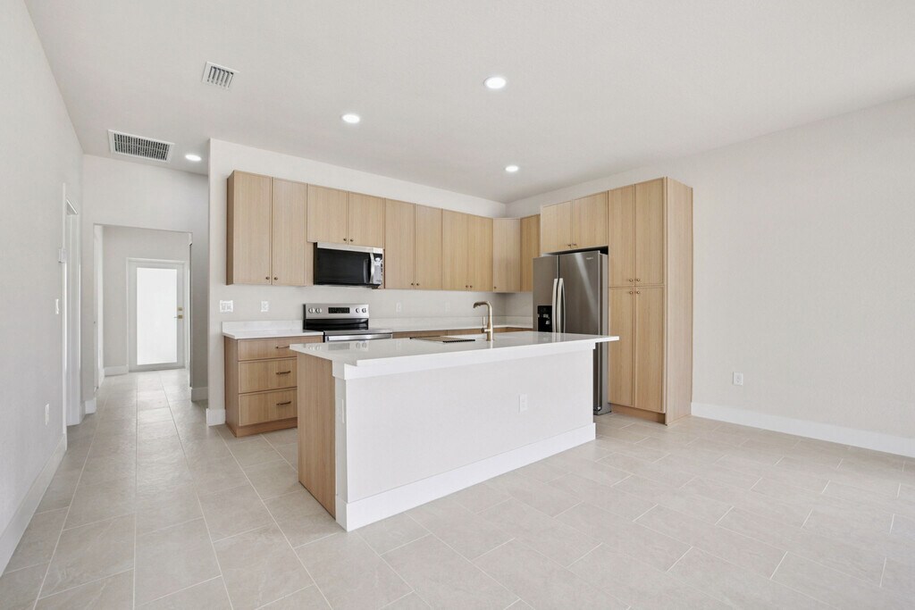 Brand-new 3-bed, 2-bath home in West Lehigh Acres (33973). Modern open layout with porcelain tile floors, stainless-steel appliances, quartz counters, and triple-sliding doors to a private lanai. Primary suite features double vanities and walk-in shower. Energy-efficient build with attached garage and laundry. Convenient to Gunnery Rd S, Sunshine Blvd, schools, and shopping. No water bill. Move-in ready and never lived in. Rent $1,900/m Contact Z Charles at to learn more.
