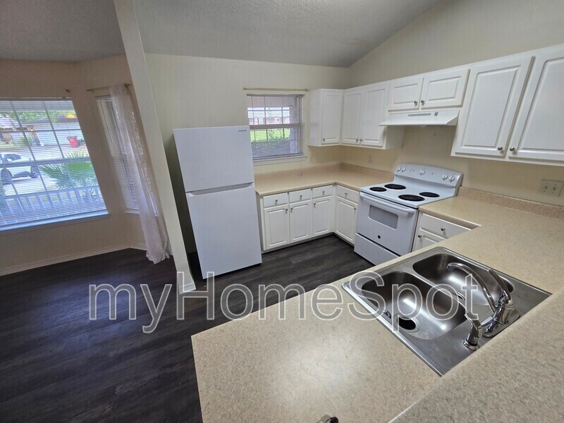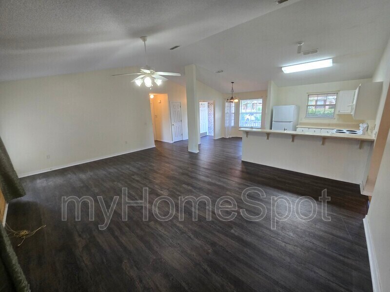 Welcome to this charming all-brick home located in the desirable La Florasta neighborhood in Pace! This spacious 3-bedroom, 2-bathroom home offers an open and inviting layout with 1,547 square feet of well-designed living space. Step into the bright and airy Great Room featuring soaring cathedral ceilings and abundant natural light. The open floor plan seamlessly connects the living, dining, and kitchen areasperfect for entertaining or relaxing with family. The home features a split floor plan, offering added privacy between the primary suite and additional bedrooms. Throughout the home, you'll find beautiful hardwood flooring, adding warmth and style to every room. Enjoy the outdoors in the huge fenced-in backyard with a concrete patio, ideal for grilling, relaxing, or hosting guests. A 2-car garage provides plenty of parking and storage space. No pets, please. Don't miss this opportunity to live in a peaceful community with great access to schools, shopping, and everything Pace has to offer. NOTE: Guest bedrooms and guest hallway flooring currently being change to luxury vinyl wood flooring.
