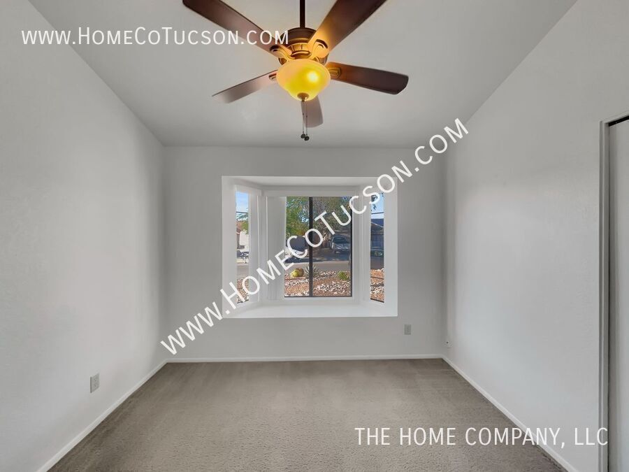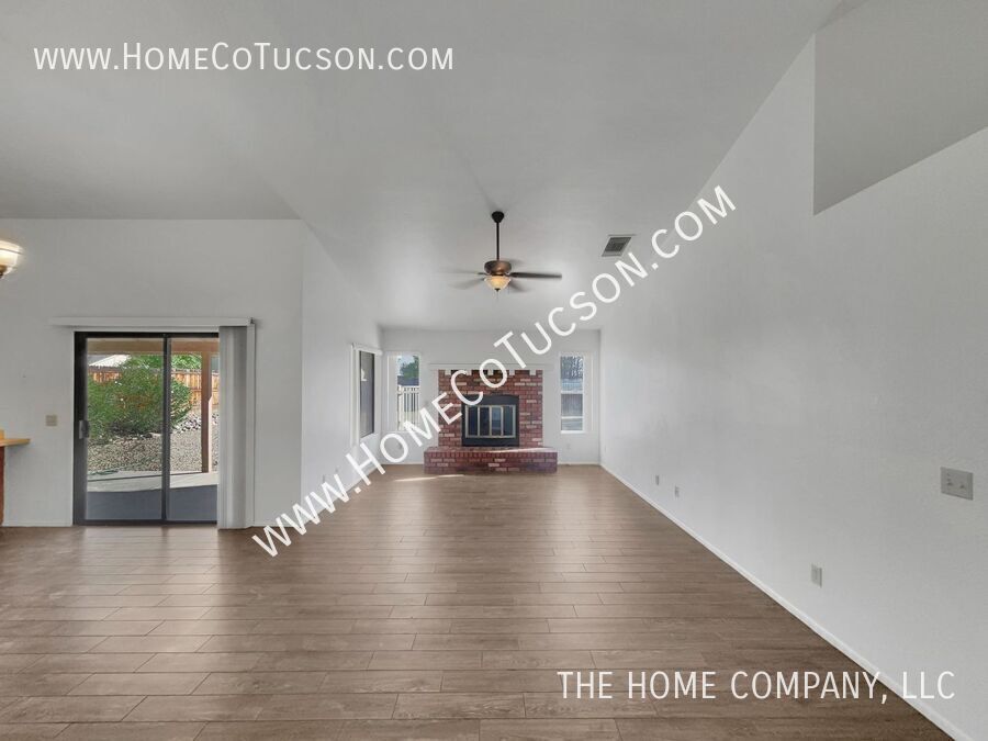 Welcome to this inviting three-bedroom, two-bath home featuring a spacious great room floorplan with wood-look tile flooring and a decorative fireplace. The open kitchen includes a breakfast bar, ample cabinet space, and a large window overlooking the backyard. From the dining area, step through the patio door into the expansive walled yard complete with a separately fenced private pool—weekly pool service is included for your convenience. All three bedrooms feature comfortable carpet flooring, and the primary suite offers an ensuite bath with dual vanity and walk-in closet. Additional highlights include a spacious laundry room and a two-car garage. Situated on a corner lot, this home combines comfort, convenience, and enjoyable outdoor living. Landlord would prefer no cats. To review our rental qualifications, apply, view additional video tours, or schedule a showing, please visit: **Website: ** For questions during business hours, please contact us: Text: Email: VIDEO TOUR: Explore this property with our comprehensive video tour to get a closer look at every detail before scheduling an in-person visit. **Walking Tour** **Virtual Tour** HOA: UTILITIES: Paid for by the tenant. Weekly pool service included QUALIFYING REQUIREMENTS: Email for a full disclosure of fees and to review a blank lease document. Experience the difference with The Home Company! Visit to schedule a showing, apply, view additional media for each available property, and review detailed qualifying requirements and information. Proudly setting the standard for property management in Arizona, The Home Company is dedicated to improving the rental experience for both tenants and landlords. As an Equal Opportunity Housing provider, we are committed to fairness and transparency in every interaction. All our agents are licensed Real Estate Professionals, delivering knowledgeable support and exceptional service. Please note, The Home Company, LLC exclusively represents the Landlord in all property-related matters. As the Landlord’s authorized Agent, our responsibility is to act in their best interests throughout the rental process. Call: (Leasing Department, Monday–Friday, 10 AM–4 PM) Corner Lot Covered Back Patio Covered Patio Driveway Dual Vanity Fenced Pool Great Room Large Lot Large Private Walled Yard Laundry Room Metro Water Monthly Pool Service One Story Primary Bedroom With Ensuite Bathroom Private Pool Private Pool With Pool Service Southwest Gas 1 Tenant Is Responsible For All Utilties Tenant Responsible For Electric Tucson Electric Power Tenant To Contact The Following Utilities To Establish Service: Three Bedrooms Trash Service Of Tenants Choice Two Bathrooms Two Car Garage Washer/Dryer Hook Up