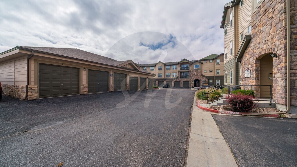 Great Views from the second floor patio of this condo! As you enter this home you are greeted with gleaming dark laminate floors that flow through the main living space. Open kitchen with stainless steel appliances, solid surface counters and center island with bar seating flows into the main living space with a gas fireplace and access to the deck for those amazing views and watching the sun set. There is a laundry area, full bath and large bedroom on one side of the house and the primary bedroom with an attached bath and walk-in closet on the other side. One car detached garage for parking and access to the outdoor pool in the summer. Great location for shopping, entertainment, military bases and restaurants. For more information and an application, go to 3d Tour: