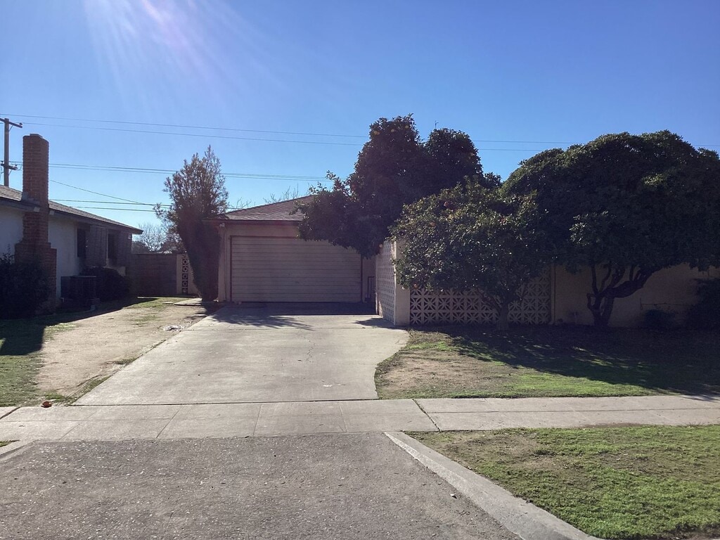 This house has approximately 1300 square feet with a living room, dining area, carpets, tile flooring in 1 bedroom and bathroom, linoleum flooring in kitchen, blinds, tile counters, electric range, dishwasher, garbage disposal, laundry hook-ups, central heat & air, 2-car garage, front & backyard. Take N. Chestnut Avenue to E. Floradora Avenue. Close to school, park & shopping. Pets very strictly negotiable (1 small pet under 20lbs, outside only). L/D!