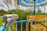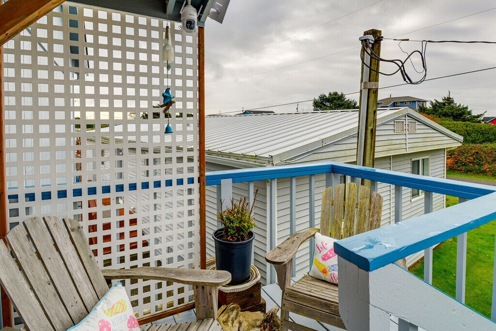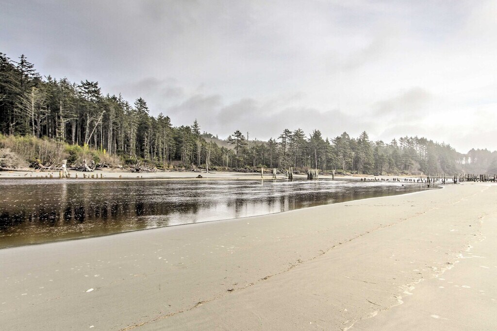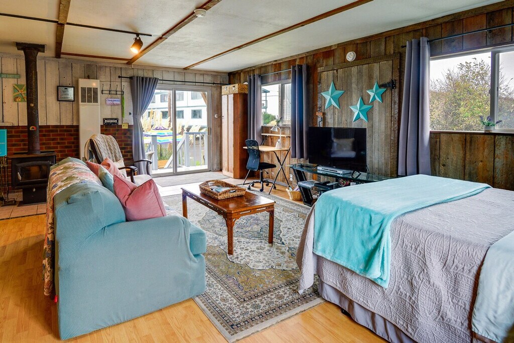 Your next Pacific Northwest adventure awaits in this ocean-view studio. Just a short walk from Mocrocks Beach, this cozy studio is located on the second floor and requires stairs for entry. Feel at home and enjoy the coast. This studio features a smart TV, DVD player, wood-burning stove with a starter log, a dining table, and free Wi-Fi. The kitchen is equipped with a refrigerator, stove/oven, dishwasher, drip coffee maker, kettle, coffee, tea, snacks, blender, toaster oven, microwave, cooking basics, dishware, flatware, and spices. A washer, dryer, laundry detergent, iron, board, linens, towels, complimentary toiletries, a hair dryer, hangers, trash bags, and paper towels are provided. This property is dog-friendly with a $50 fee, and designated parking for two vehicles is available. Spend your trip exploring the nearby town of Seabrook, clam digging, strolling along the shoreline, and watching beautiful sunsets. Smoking, events, parties, and large gatherings are prohibited. Guests must be at least 25 years old to book. There is an exterior security camera facing the front entry/stairwell. The camera actively records video and sound when motion is detected. Includes a laptop-friendly desk. [SI]