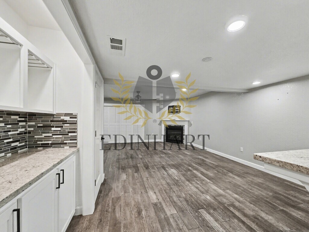 This bright and welcoming three-bedroom townhome has a fresh, comfortable feel from the moment you arrive. The main living space is open and filled with natural light, with wide plank flooring, recessed lighting, and a fireplace that adds warmth and character. Plantation shutters throughout the home provide privacy and light control while keeping everything bright and airy. The kitchen is nicely updated with granite countertops, white cabinetry, stainless steel appliances, and a breakfast bar that opens to the living and dining areas, making it great for everyday living and casual entertaining. All three bedrooms are well sized and thoughtfully laid out, with soft carpet, ceiling fans, and good closet space. The bathrooms are updated with modern vanities, contemporary fixtures, and walk-in showers. There is also great storage throughout the home, including hallway cabinetry and generous closets, which makes staying organized easy. The private patio offers a quiet outdoor space to enjoy a cup of coffee or unwind in the evenings, and the surrounding community is peaceful and well maintained with mature landscaping, walking paths, and a community pool.