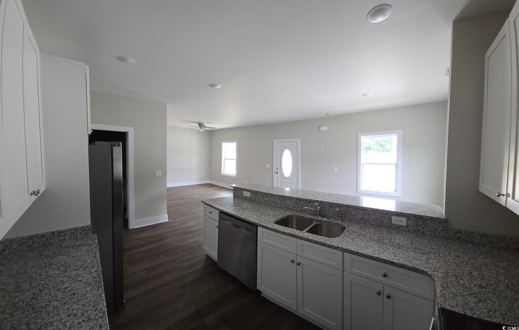 This newly constructed 3-bedroom,2-bath home sits on a spacious half-acre lot with no HOA. As you walk through the front door,you're greeted with an open floor plan and plenty of natural light. Additional features include beautiful LVP flooring throughout,granite countertops,and brand-new stainless-steel appliances. Relax on the inviting front porch,perfect for enjoying your morning coffee or unwinding in the evenings