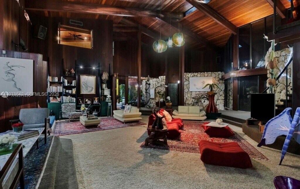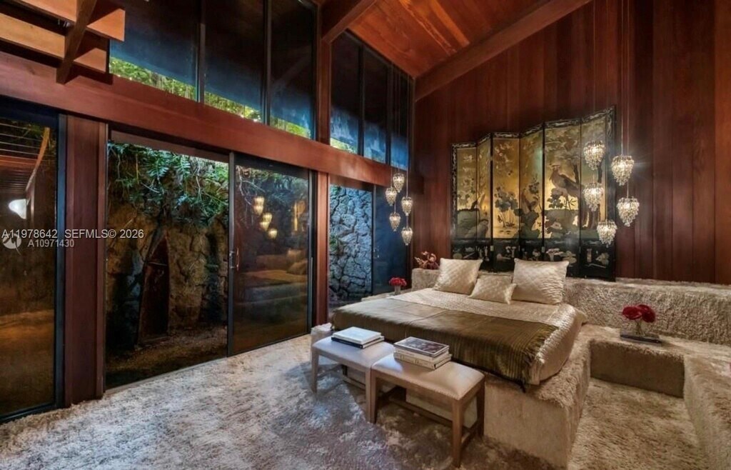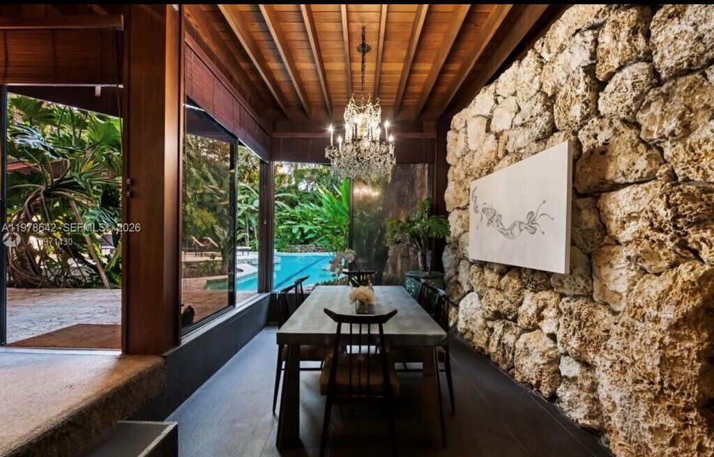 Inside an Architectural Sanctuary Ponce-Davis - Miami Hidden within the lush canopy of Ponce-Davis stands a residence that was never built to follow trends only to endure. Designed in the '70s by architect Chayo Frank as his personal home, this 5,000+square foot steel-framed sanctuary was conceived as an environment, not merely a structure. Inspired by the organic philosophy of Frank Lloyd Wright, the home blends geometry, nature, and permanence with rare intention. Exposed structural steel beams form its skeleton, while California redwood wraps the interior and exterior in warmth. Curving 10-foot coral rock walls and expansive glass dissolve boundaries between living space and jungle. A cavernous redwood clad great room with sunken lounge anchors the home. A sculptural staircase hugs coral stone. A ladder-access office floats above like a private aerie. The double height primary suite rises with quiet authority, while upstairs bedrooms open to a terrace immersed in tropical canopy. A 50 foot lap lane flows into a free form pool bordered by coral stone patios. Winding paths reveal coral grottos & rare imported botanicals a curated ecosystem of extraordinary value. This is not speculative luxury. It is authored architecture. A steel & redwood sanctuary that can't be replicated. it is rare to encounter a masterpiece of this magnitude and rarer still to deliver a sanctuary like this to the one person capable of truly becoming one with it. Also for sale $9,990,000 MLS # A11978642