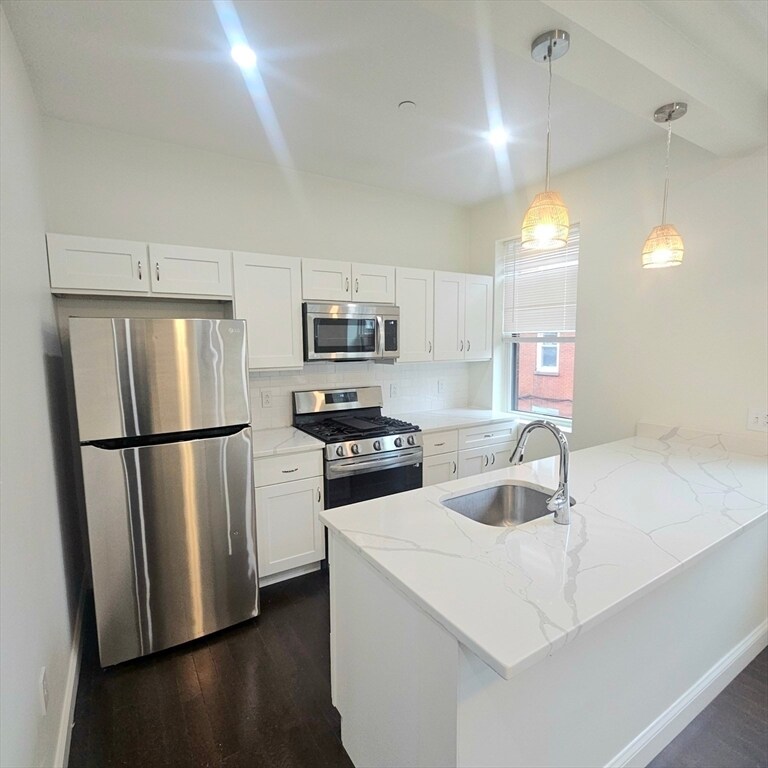 North End meets the Waterfront at this just completed boutique building,featuring six new condo quality apartments. Two bedroom flats,all offering luxe kitchens with gas cooking,stainless steel appliances,Bianco Calacatta Quartz countertops,and a large island. The elegant spa baths are delightful,featuring tasteful marble mosaic flooring,polished nickel fittings,and LED lighting. Every residence features private in-unit laundry. There are hardwood floors throughout and generous bedrooms. At your doorstep,the city awaits you with fine dining,coffee shops,gourmet groceries,sporting venues,arts,waterfront,and Logan Airport,minutes away. MLS# 73473380