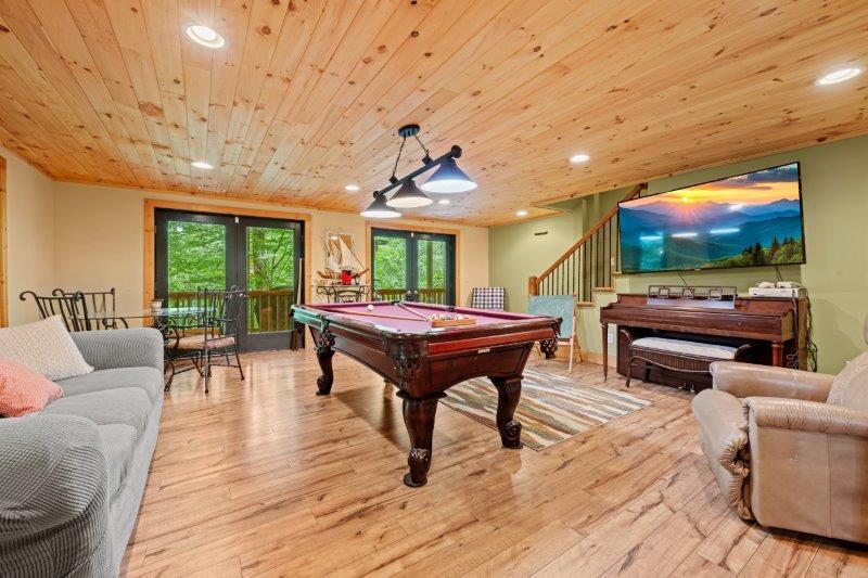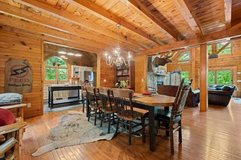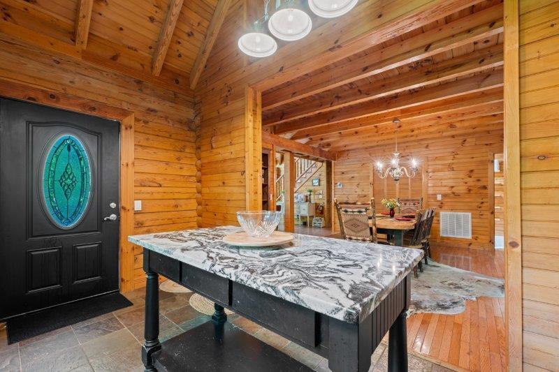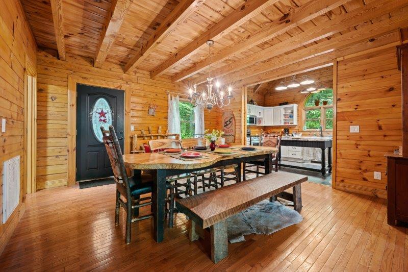 Fully furnished available for 1 year lease Beautiful log cabin with a unique mountain character in a central location convenient to all the High Country offers. Located just a few minutes from downtown Banner Elk, the lodge sits right between Sugar and Beech Mountain Ski Resorts, about ten miles to either one. Grandfather Mountain is also about ten miles away. The property is convenient to Boone, Blowing Rock, Tweetsie Railroad, Hawksnest Snow-tubing and Zip-lining, Linville Falls and Caverns, Valle Crucis, and everything else one would want to do or see in the NC High Country! The impressive main floor great room has high exposed beam tongue-and-groove ceilings with large windows revealing the mountain scenery. Leather furniture surrounds the stacked stone gas fireplace and TV. A custom wood dining table accommodates all eight guests in the dining room, with the kitchen just beyond. The lower level features a game room with a pool table, piano, and a large, mounted flat-screen TV. The lower-level deck has a hot tub, a wooden porch swing, and a propane heater. The backyard has a picnic table and fire pit for afternoon picnics and evening marshmallow roasts. The main floor master bedroom has a comfortable queen bed, deck access, a TV, and an ensuite bathroom with a claw foot tub and step-in shower. The upper level has a bedroom with a full bed, a TV, and a second loft sleeping area open to the great room below. The open loft has a double bed and a twin bed with a twin trundle. There is a queen bedroom on the lower level and a full bathroom with a soaking tub and tile shower. Additional amenities include wifi, central heating, air conditioning, a washer and dryer, and ROKU-equipped TVs. This property is pet-friendly, and two dogs are welcome with your reservation. Additional pet fees apply. The paved driveway has parking for two to three cars outside the lower-level garage. The long staircase from the parking area to the main level deck accesses the front entrance. The stylish mountain decor and bright colors create an appealing mountain getaway experience! Please note: We highly recommend you prepare for inclement weather and poor road conditions with a 4-WD or AWD vehicle, as well as tire chains in the wintertime. FULLY FURNISHED AND ALL UTILITIES INCLUDED MUST BE AT LEAST 25 YEARS OF AGE Fully furnished available for flexible lease length. Beautiful log cabin with a unique mountain character in a central location convenient to all the High Country offers. Located just a few minutes from downtown Banner Elk, the lodge sits right between Sugar and Beech Mountain Ski Resorts, about ten miles to either one. Grandfather Mountain is also about ten miles away. The property is convenient to Boone, Blowing Rock, Tweetsie Railroad, Hawksnest Snow-tubing and Zip-lining, Linville Falls and Caverns, Valle Crucis, and everything else one would want to do or see in the NC High Country! The impressive main floor great room has high exposed beam tongue-and-groove ceilings with large windows revealing the mountain scenery. Leather furniture surrounds the stacked stone gas fireplace and TV. A custom wood dining table accommodates all eight guests in the dining room, with the kitchen just beyond. The lower level features a game room with a pool table, piano, and a large, mounted flat-screen TV. The lower-level deck has a hot tub, a wooden porch swing, and a propane heater. The backyard has a picnic table and fire pit for afternoon picnics and evening marshmallow roasts. The main floor master bedroom has a comfortable queen bed, deck access, a TV, and an ensuite bathroom with a claw foot tub and step-in shower. The upper level has a bedroom with a full bed, a TV, and a second loft sleeping area open to the great room below. The open loft has a double bed and a twin bed with a twin trundle. There is a queen bedroom on the lower level and a full bathroom with a soaking tub and tile shower. Additional amenities include wifi, central heating, air conditioning, a washer and dryer, and ROKU-equipped TVs. This property is pet-friendly, and two dogs are welcome with your reservation. Additional pet fees apply. The paved driveway has parking for two to three cars outside the lower-level garage. The long staircase from the parking area to the main level deck accesses the front entrance. The stylish mountain decor and bright colors create an appealing mountain getaway experience! Please note: We highly recommend you prepare for inclement weather and poor road conditions with a 4-WD or AWD vehicle, as well as tire chains in the wintertime. FULLY FURNISHED AND ALL UTILITIES INCLUDED MUST BE AT LEAST 25 YEARS OF AGE