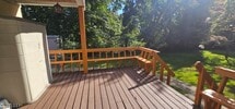 Why rent in a big complex when you can have the privacy of a deck, fenced in yard, garden of this FIRST FLOOR PRIVATE ENTRANCE RENTAL! New floors just redone- got rid of carpets! Great space on a quiet cul du sac! Kitchen w/tons of cabinets and counter space, Living Room, 2 Bedrooms, 1 Bathroom and 1 Bonus Sunroom that you can use for dining, office, family room etc that has door to deck and fenced in yard! Shared laundry in garage. Utilities are shared. PETS WILL BE CONSIDERED! please call. Must use NTN credit/background check. Tenant pays 1.5 mo security deposit, first month rent, Must have tenants insurance.