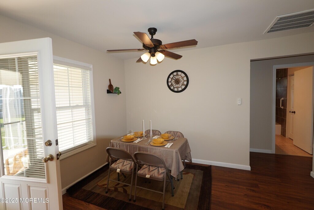 ENERGY EFFICIENT Danbury Model in Leisure Knoll 55+,Community in Manchester NJ. Just miles to the Shore,Garden State Pkwy and ample shopping and dining spots. 2-bedrooms,2 full baths,very large eat-in-kitchen,one car attached garage,with a Double Wide Driveway. The washer/dryer were removed from the bathroom closet and placed in its own little laundry room with folding space and shelving right off the kitchen. The living room,kitchen and both bedrooms have ceiling fans. The large back patio/porch is covered for added convenience! GAS HEAT/COOKING,and a TANKLESS HOT WATER HEATER will make you enjoy savings on utilities. This updated home has been professionally painted and cleaned and is move-in ready.