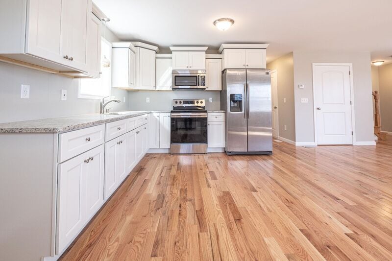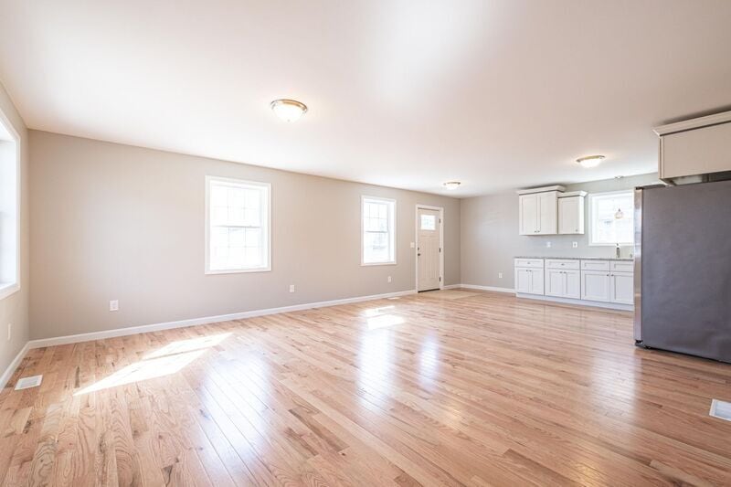 Brand new duplex unit with modern finishes. Walk into an open floor plan with hardwood flooring. Goes into a kitchen with white cabinets, counter-tops and included appliances (fridge and range). Recess lighting throughout. Half bathroom on the 1st floor. 3 BR's on second floor with closet spaces. Full bathroom on second floor. Walk-out basement. Washer and dryer hook-ups provided. Gas heat and electric tenant responsibility. Lawn and snow care tenant responsibility. Big backyard space. Off-street parking. First and security to move-in with approved credit. Amenities: Off-street Parking, brand new build