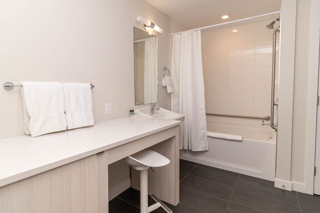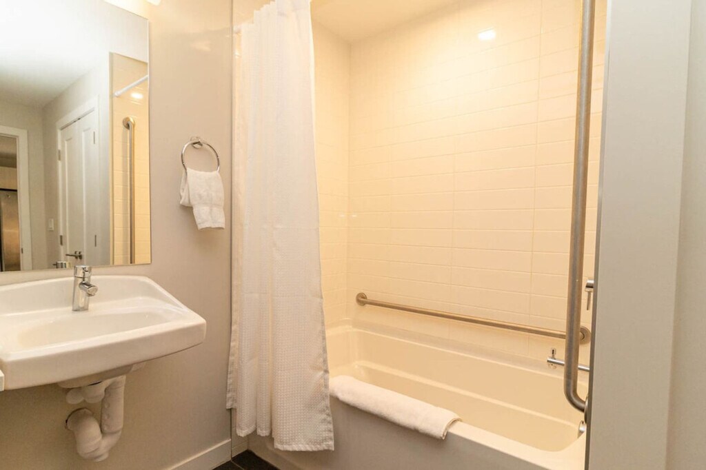Experience the pinnacle of modern living in Dartmouth with this exceptional, contemporary apartment. Thoughtfully designed to seamlessly combine sophistication and comfort, it serves as the ideal retreat for business professionals, families, or couples looking for a peaceful getaway. This spacious 1-bedroom apartment offers stunning skyline views, a fully equipped kitchen, in-suite laundry for added convenience, and gym access. Located just steps from top attractions, it provides a perfect blend of urban convenience and natural beauty. Step into your stylish urban retreat in Dartmouth! This chic one-bedroom apartment offers an open-concept design that seamlessly blends comfort with sophistication. Relax on the plush sofa and enjoy breathtaking skyline views of Halifax. With modern furnishings and an expansive layout, this is the perfect space to unwind after a busy day of sightseeing or work. The sleek, fully equipped kitchen features modern finishes, plenty of counter space, and top-of-the-line appliances, making it ideal for preparing a quick meal or cooking a gourmet feast. Indoor parking is available for an additional fee, subject to availability, and reservations are required. An IPTV Box with over 300 channels is available upon request for an additional fee. The apartment is pet-friendly, welcoming one pet per apartment. Nestled in a vibrant neighborhood, this apartment is just steps away from top attractions, museums, parks, and restaurants, making it perfect for both business and leisure travelers. The neighborhood surrounding Kings Wharf offers a vibrant waterfront lifestyle with modern amenities and stunning views, located along the picturesque Halifax Harbour. The area is known for its scenic boardwalks, ideal for walking and cycling, and the nearby ferry service that provides a quick connection to downtown Halifax. With the Halifax Stanfield International Airport just a short drive away, this location is ideal for both leisure and business travelers. Guests will have full access to the entire apartment with complete privacy. The building offers elevator access for easy navigation. A Notice to Vacate must be sent in writing 30 nights before the departure date, and failure to do so will result in a charge of 30 nights for stays over 30 nights. Reservations can be extended with 30 nights notice and are always subject to availability and rate variances. This apartment is ideal for business travelers, with high-speed Wi-Fi and a dedicated workspace, offering an efficient yet comfortable environment to balance productivity and relaxation. [SI]