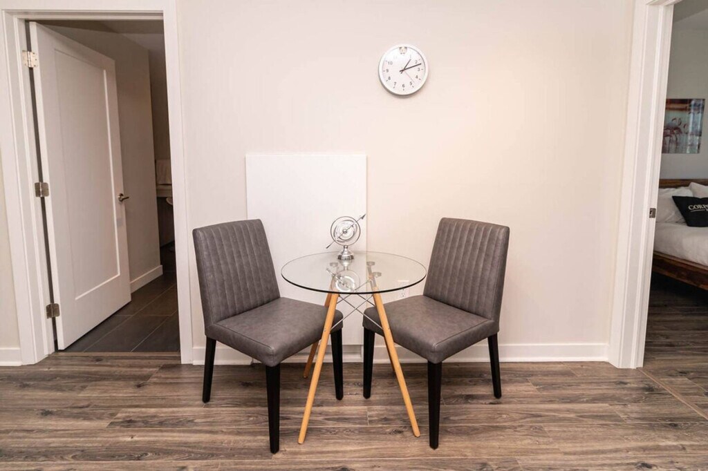 Experience the height of modern living in Dartmouth with this stunning, contemporary apartment. Thoughtfully designed to blend elegance and comfort, it serves as the perfect escape for business professionals, families, or couples seeking a relaxing retreat. This spacious 2-bedroom apartment offers breathtaking skyline views, a fully equipped kitchen, in-suite laundry for extra convenience, and gym access. Located just steps from popular attractions, you'll feel at home in this vibrant neighborhood. Welcome to your stylish urban sanctuary in Dartmouth! This elegant one-bedroom apartment features an open-concept layout that effortlessly combines comfort and style. Relax on the plush sofa while enjoying breathtaking skyline views of Halifax. With its modern furnishings and spacious design, this is the ideal place to unwind after a day of sightseeing or business. Whether you're watching your favorite shows on the Smart TV or simply enjoying the view, this apartment guarantees a memorable stay. Unleash your inner chef in this sleek, fully equipped kitchen, which boasts contemporary finishes, plenty of counter space, and high-end appliances. Whether you're preparing a quick snack or crafting a gourmet meal, this kitchen has everything you need. It’s the perfect space for enjoying a solo meal or entertaining guests, making every meal a delightful experience. Indoor parking is available for an additional fee, subject to availability, and reservations are required. An IPTV Box with over 300 channels is available upon request for an additional fee. We are proud to be pet-friendly, welcoming one pet per apartment. The neighborhood surrounding Kings Wharf offers a vibrant waterfront lifestyle with modern amenities and stunning views. It’s a perfect blend of urban convenience and natural beauty, located along the picturesque Halifax Harbour. The area is known for its scenic boardwalks, ideal for walking and cycling, and the nearby ferry service that provides a quick connection to downtown Halifax. You'll find plenty of shops, cafes, and restaurants within walking distance, offering diverse dining options and local experiences. For outdoor enthusiasts, parks like Sullivan’s Pond and Shubie Park provide ample green space for relaxation and recreation. With the Halifax Stanfield International Airport just a short drive away, this location is ideal for both leisure and business travelers. Guests will have full access to the entire apartment with complete privacy. The Kings Wharf area is well-connected, making it easy to explore Dartmouth and beyond. For those traveling by public transit, the local bus service is just a short walk away, providing convenient access to major routes around the city. You’ll also find the Halifax-Dartmouth Ferry Terminal nearby, offering a quick and scenic ride across the harbor to downtown Halifax, which is only minutes away by water. For driving, you'll have access to major highways that link you to the rest of the Halifax Regional Municipality and beyond. If you're flying in, the Halifax Stanfield International Airport is a short drive, ensuring easy travel connections. Whether you prefer to walk, bike, or use public transport, getting around from Kings Wharf is seamless, making it a fantastic base for both business and leisure travel. A Notice to Vacate must be sent in writing 30 nights before the departure date. Failure to do so will result in a charge of 30 nights (only valid for stays over 30 nights). Reservations can be extended with 30 nights notice and are always subject to availability and rate variances. Ideal for business travelers, this apartment offers high-speed Wi-Fi and a dedicated workspace, providing an efficient yet comfortable environment to balance work and relaxation. [SI]