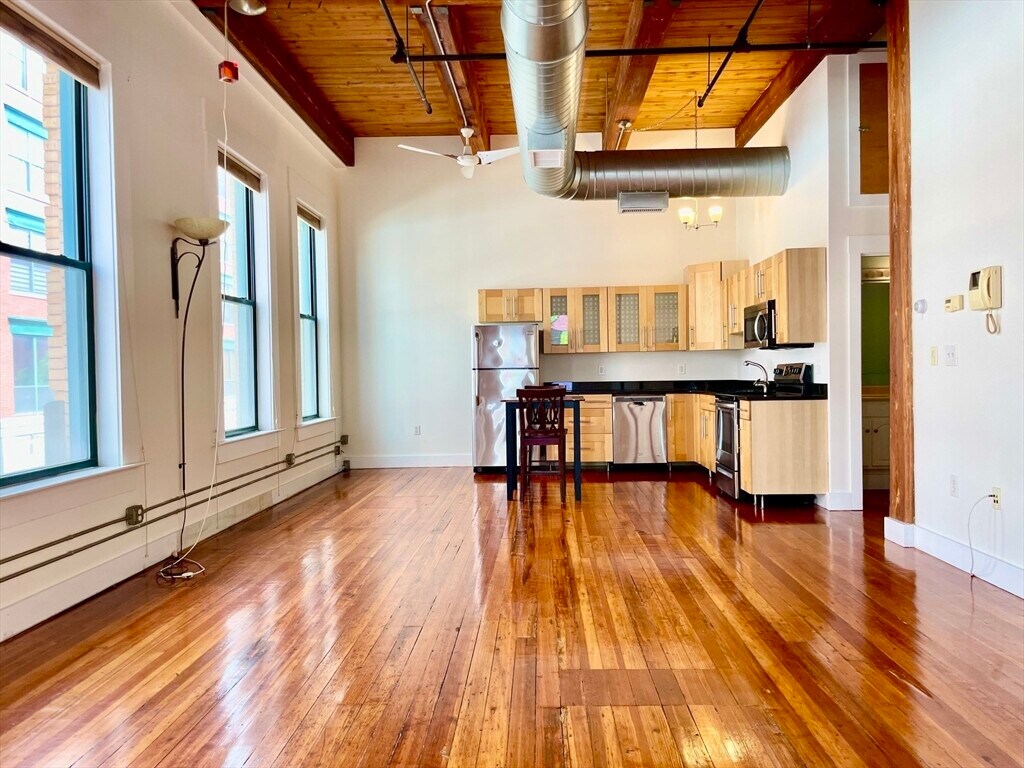 Live in this bright and spacious corner loft in the heart of Downtown Lynn! This sun-filled unit features soaring ceilings,two walls of oversized windows,and exposed ductwork and beams that create a true industrial aesthetic. The open kitchen is equipped with stainless steel appliances and granite countertops,complemented by hardwood flooring that extends throughout the living area. Conveniently located near restaurants,shopping,public transit,and the beach. Ideal for tenants seeking a unique loft-style rental in a vibrant downtown setting. MLS# 73480726