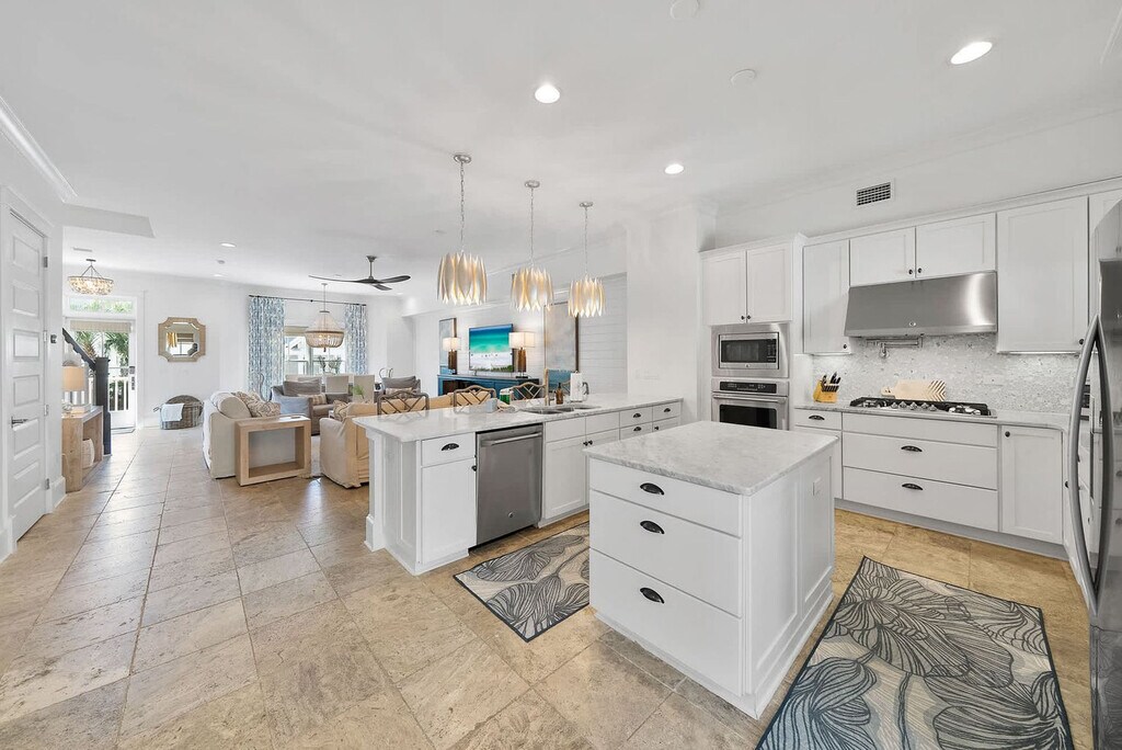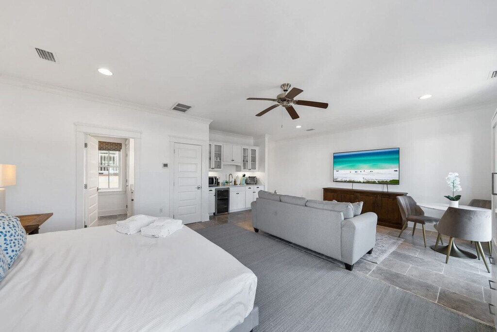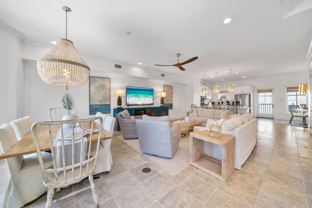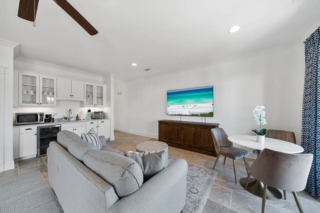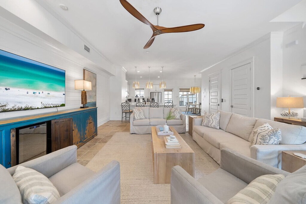 The advertised rate of $6,965/month is the lowest available price, based on a 1 month(s) stay with a move-in date of April 12, 2026. Rates vary depending on the duration of stay, season, and other parameters. For exact pricing and additional pricing components, please visit our website and enter your desired move-in and move-out dates. The rate is applicable when billed upfront; it can be higher if billed in multiple payments. Feel at home in this designer-crafted, pet-friendly, three-story luxury home in Prominence, just south of Scenic 30A. This home features 5 bedrooms, 5.5 bathrooms, a private carriage house, and space for up to 15 guests. Elevator access is available to all three levels for ease and accessibility. This home gives you the space, privacy, and premium comforts you deserve, from dual living spaces and two kitchens to balconies on every floor. The main house boasts a bright open-concept layout with high-end finishes throughout. The chef’s kitchen is fully equipped and flows into the elegant dining area and stylish living space. The carriage house over the garage adds an extra layer of privacy, perfect for in-laws or couples wanting their own retreat. Enjoy access to Prominence’s 5,000 sq. ft. heated resort-style pool, with water features, shaded cabanas, and lounging galore. The enclosed courtyard features a fire pit for cozy evenings and outdoor gatherings. Enjoy a complimentary 6-passenger golf cart and 6 adult bikes to explore all of 30A. Pets are allowed with a pet fee added when booked. Nestled between Seaside and Alys Beach, Prominence is one of 30A’s hottest neighborhoods, offering natural beauty, walkability, and vibrant energy in every direction. The entire community is built around The Big Chill, a vibrant open-air hub of food, drinks, live music, and family-friendly entertainment. Nearby beach access points include Deer Lake State Park (0.5 mi), Walton Dunes (2 mi), Santa Clara (3.5 mi), Gulf Lakes (0.5 mi east), and Sea Breeze. Vehicles are not allowed to park on the street. All vehicles (including carts) must be parked in garages, driveways, or the common gravel parking areas along the streets on the south side. Onsite parking can accommodate 4 vehicles. There is no smoking inside or outside while on the property. [SI]