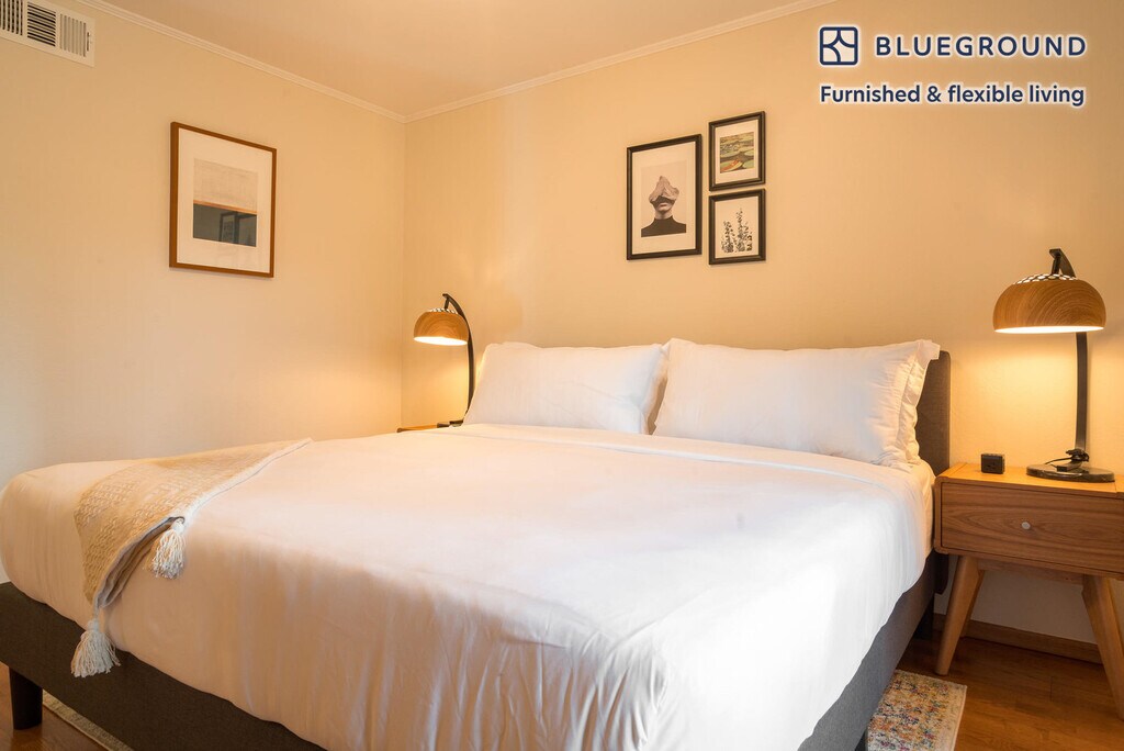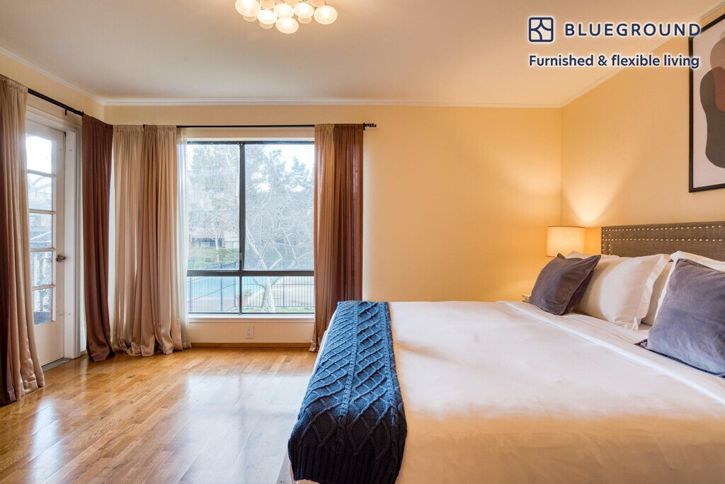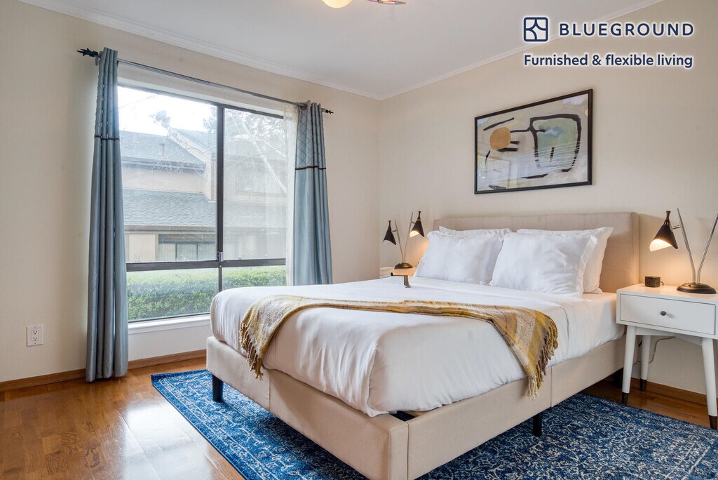 Feel at home wherever you choose to live with Blueground. You’ll love this stylish The Crossings furnished three bedroom apartment with its modern decor, fully equipped kitchen, and bright living room. Ideally located, you’re close to all the best that Mountain View has to offer! (ID #SFO1622) The advertised rate of $5,170/month is the lowest available price, based on a 12 month(s) stay with a move-in date of March 29, 2026. Rates vary depending on the duration of stay, season, and other parameters. For exact pricing and additional pricing components, please visit our website and enter your desired move-in and move-out dates. The rate is applicable when billed upfront; it can be higher if billed in multiple payments. Brokers are welcome to reach out. Were you looking for an unfurnished lease? Try Blueground instead and upgrade from unfurnished to furnished living: - Furnished at rates comparable to unfurnished - No setup or furniture costs - save thousands - Move-in ready - save time, just bring your suitcase Designed with you in mind As with any Blueground apartment, you’ll find a thoughtfully designed space complete with beautiful furniture and a fully equipped kitchen in this three bedroom property. And, thanks to our superior quality mattresses, luxury linens, and towels, you can relax knowing you’ll always feel comfortably at home. When you’re ready for some fun, you can take in the Mountain View vibes or bring the entertainment to you with the premium wireless speaker or smart TV. This apartment also offers in-apartment laundry. Sleeping arrangements King Bed, 70.8in/180cm King Bed, 70.8in/180cm Queen Bed, 63in/160cm Amenities Building amenities unique to this three bedroom apartment include an on-site: - Dryer - Swimming pool - Washing machine - Parking - Pets allowed Arrival and ongoing support The entire apartment is yours to enjoy! Throughout your stay, you’ll have access to our Client Experience team through the Blueground App. You can schedule additional cleanings, submit maintenance requests, and view our neighborhood recommendations with just a few taps. We’ll share all details upon confirmation of your stay. Other things to note Building amenities may have an extra cost. This Blueground apartment has flexible lease options, allowing you to book it for one month, a year, or more. Pets are welcome, though weight limits and breed restrictions apply and may incur fees. Parking is offered based on availability and is subject to a fee. Please keep in mind that this is a walk up building. We take great pride in ensuring every photo displayed is shot in our own units with our actual furnishings. That said, we regularly refresh our decor and furniture arrangement, which may differ from what’s pictured. [SI]