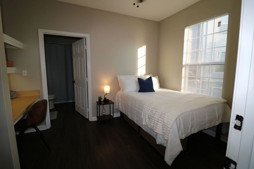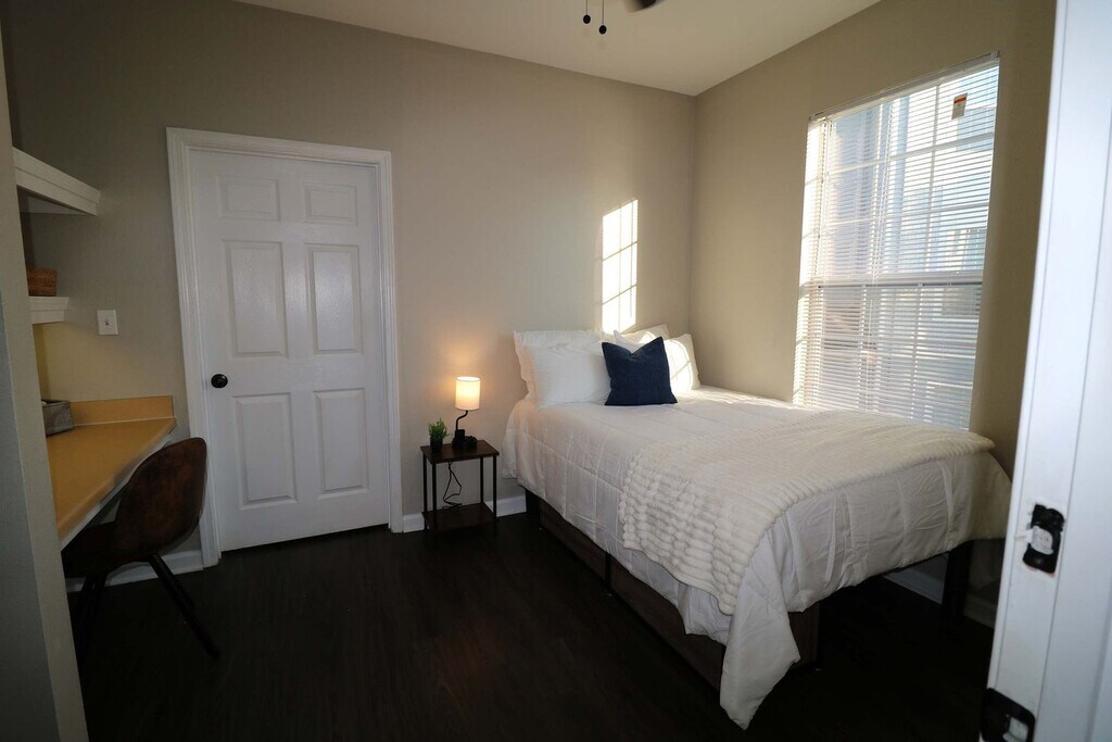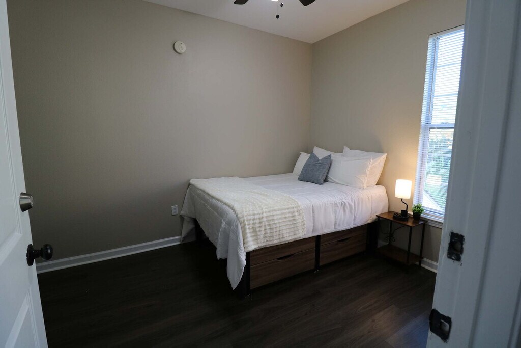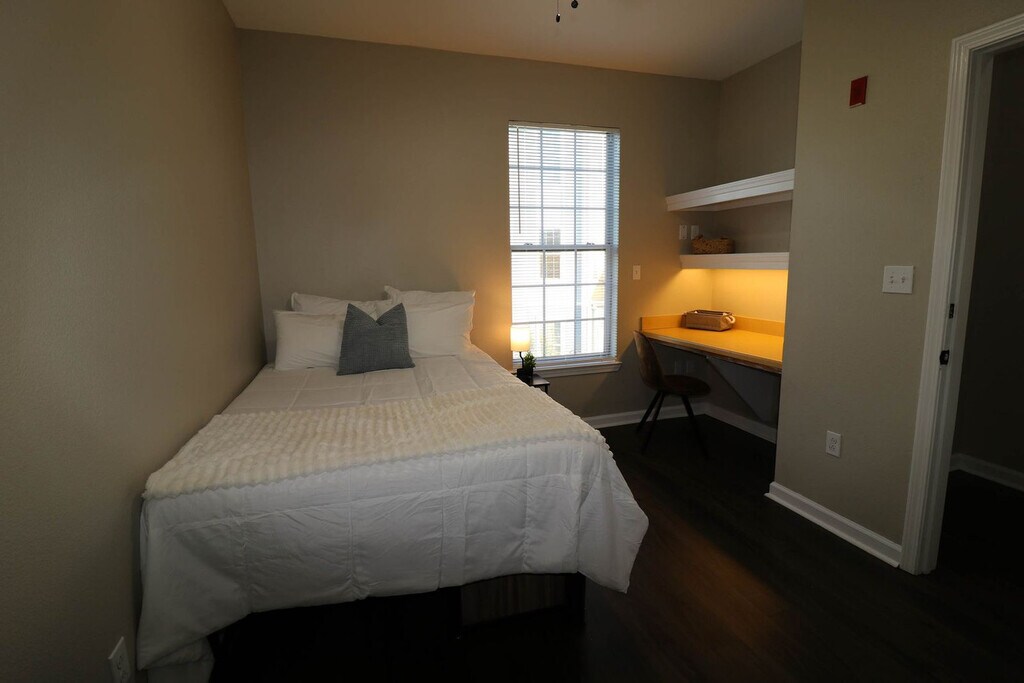 Stay in comfort and feel at home in this modern 4-bedroom/4-bathroom apartment, just a 14-minute walk from UNC Pembroke. This apartment is thoughtfully furnished with everything you need for both short-term and extended stays. Inside you’ll find a living area with a sofa, chairs, smart TV, and plenty of natural light, as well as a dining nook with seating for two. The fully equipped kitchen includes a stove, oven, microwave, refrigerator, blender, coffee maker, cookware, and dishes. You'll also find an in-unit washer and dryer with laundry supplies. High-speed Wi-Fi is available throughout. Enjoy access to community amenities, including a refreshing pool, fitness center, and business lounge. Free on-site parking is available with two spots and a parking pass. Enjoy the convenience of your own private space paired with access to community amenities. All listed and shared amenities, including gyms and other building features, are available for guest use at your own risk. Access is not guaranteed and may be limited or unavailable due to building maintenance, scheduling, or other factors. The host is not liable for any injuries, accidents, or service interruptions that may occur during your stay. Quiet hours are from 10 PM to 8 AM. A warning will be issued for noise complaints; a second complaint may result in removal from the property without refund. Smoking is strictly prohibited inside the unit, in common areas, and on the property. Parties, events, and disruptive behavior are not permitted. Pets are not allowed. All guests must be registered and maximum occupancy limits must be followed at all times. Do not move furniture, décor, or appliances. Tampering with Wi-Fi routers, smart devices, security cameras, or locks is strictly prohibited. Mail or package delivery is not allowed. The host/property is not responsible for lost, delayed, or returned deliveries. No glitter, confetti, glue, or paint. Any added décor must be approved in advance and removed before checkout. Routine maintenance or inspections may take place during your stay. In the event that building management, maintenance staff, or emergency personnel need to access the unit, we’ll do our best to provide advance notice. Guests are required to allow entry if needed. For safety reasons, tampering with smoke detectors, carbon monoxide detectors, fire extinguishers, or other safety equipment is not permitted and may result in reservation cancellation. Lost keys, damaged lock devices, or lockouts may result in a replacement or service fee depending on the timing and circumstances. Wi-Fi is provided as a courtesy. While we aim to provide reliable service, connectivity is not guaranteed and may be impacted by provider outages or high usage. Guests are expected to maintain reasonable cleanliness during their stay. Excessive messes or damage may result in additional cleaning fees. Construction or city maintenance near the property may occur. While we try to notify guests in advance, we cannot control or refund for external noise from neighboring activity. The host reserves the right to cancel any reservation without refund if there is evidence of house rule violations, fraudulent activity, or behavior that threatens the safety, property, or quiet enjoyment of other residents. A minimum fee of $250 may be charged if any house rules are broken, including but not limited to unauthorized parties, smoking, unapproved pets, tampering with devices, or exceeding occupancy limits. Serious or repeat violations may result in immediate cancellation of your stay without refund. Bedrooms are furnished with comfortable Full XL beds, fresh linens, bedside lamps, and built-in desks for studying or remote work. En-suite bathrooms include towels, essentials, and shower/tub combos. [SI]