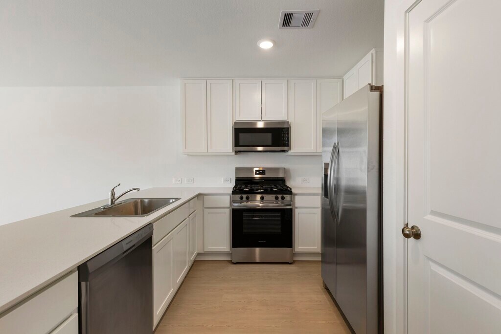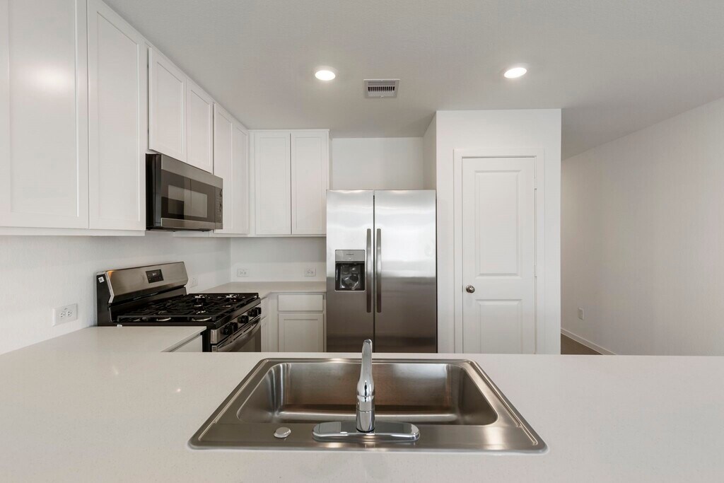 This brand-new,never-lived-in Lennar "Kitson" home features a timeless brick exterior and an interior designed for effortless living. At the heart of the home,a bright and airy open-concept layout seamlessly connects the kitchen,dining,and family rooms—perfect for hosting dinner parties or cozy nights in. The layout offers maximum privacy,with the primary suite tucked away in the rear corner,featuring a spacious en-suite bath and walk-in closet. Two additional guest bedrooms provide plenty of room for family,a home office,or visitors. This home has it all - greenbelt lot,refrigerator,washer,dryer,blinds,glass shower doors,garage door opener,and a sprinkler system! MLS# 32673248