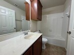 View 360 Virtual Tour: 3 bedroom 2.5 bathroom all electric home with carpet throughout and large windows for natural light. Bedrooms are located upstairs along with an additional living area. The master bedroom includes a walk in shower, a spacious soaker tub, and ceiling fans throughout the home. The kitchen features black appliances, and there are washer and dryer hookups. Outside, enjoy a large fenced backyard with a covered patio. The home also includes an attached 2 car garage. Come by our office to see this property today. This house is also available for sale. Disclaimer: The furnishings or enhancements shown are AI-generated and intended for inspiration only. They may not reflect the actual scale, condition, or current features of the property.