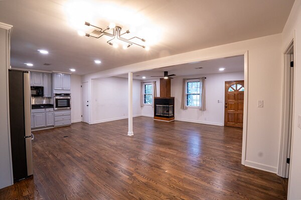 This gorgeous 3 bedroom 1 bath unit has been tastefully updated with new appliances and a clean modern aesthetic. Enjoy watching the seasons change from the comfort of the beautiful sunroom and patio. 1 car garage and parking pad both for your use. In unit laundry with washer and dryer included. Fully fenced backyard, the backyard is a shared space with the downstairs unit. Close proximity to the airport and 15 minutes from downtown. Easy access to shopping, the highways, and all the delicious food options around. No smoking inside home or sunroom. Credit check required. 4 person maximum occupancy. 1 year lease, $2,400 security deposit required and may not be applied to last months rent. $250 non refundable pet deposit per pet. Tenant is responsible for gas. Driveway must be kept clear for downstairs unit to come and go. Video tour: