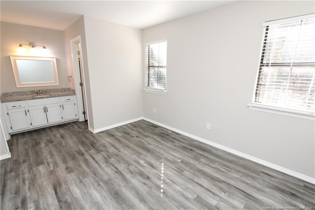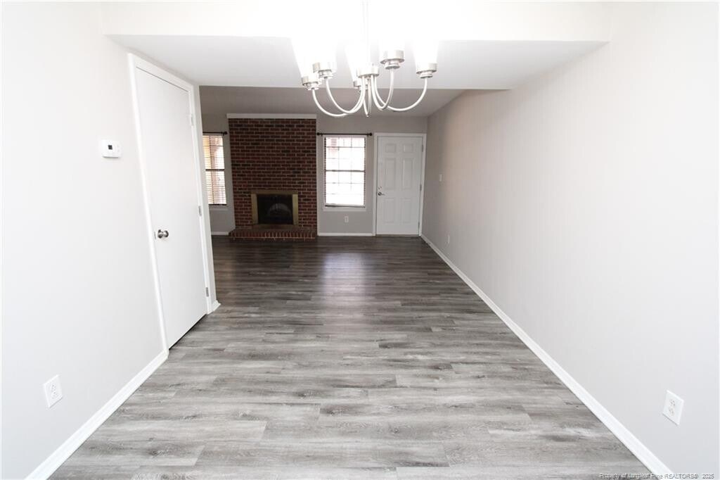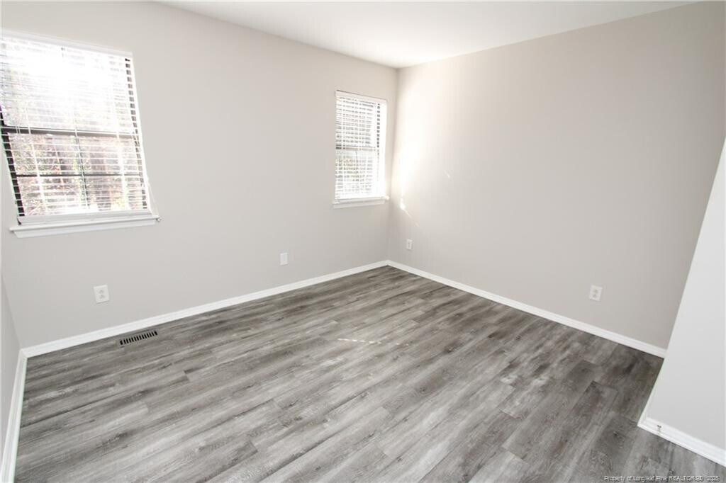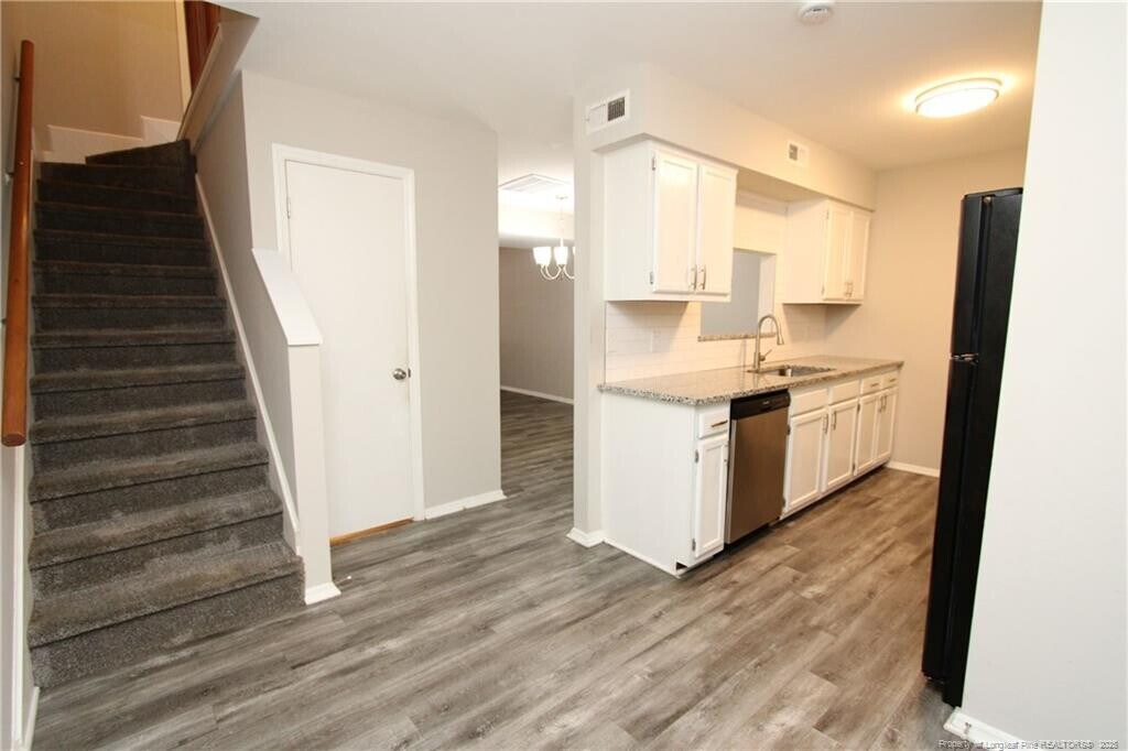 Opportunity awaits at this immaculate, upgraded, and affordable home tucked away in a quiet NE Raleigh neighborhood and available for immediate occupancy. A private parking lot and a covered porch welcome you home. Once inside, you're greeted with a totally renovated interior showcasing upgraded, modern finishes and features throughout! A spacious and welcoming family room featuring a masonry fireplace situated between two large windows greets you, while luxury plank flooring throughout the entire home and a design that lends itself to easy furniture placement follows. Next, you'll find yourself in a perfectly proportioned dining area. The dining area serves to interconnect the family room with the kitchen with an open-concept design that works perfectly for today's lifestyle. Speaking of the kitchen, you'll surely fall in love with this space offering sleek all-white cabinetry with brushed nickel hardware accentuated by beautiful granite countertops. A suite of sleek appliances (including a smooth-top oven) rounds out the kitchen experience. Just beyond the kitchen, you’ll discover a rear-facing, covered screened-in porch that overlooks a quiet, wooded buffer — a perfect setting for morning coffee or relaxing outdoors in total privacy. This area also provides access to a large double-door storage closet, ideal for keeping outdoor gear and seasonal items neatly tucked away. Off the kitchen you’ll discover a conveniently located half bathroom complete with a granite-topped single-sink vanity. Take a jaunt upstairs and you'll soon discover that the primary bedroom is quite impressive with double picture windows and an en-suite bathroom showcasing a granite-topped vanity, a tub/shower, and an expansive walk-in closet. Bedroom #2 also includes a double wall closet, as well as double picture windows and convenient access to a full hall bathroom that includes a tub/shower and an elevated, marble-topped vanity.