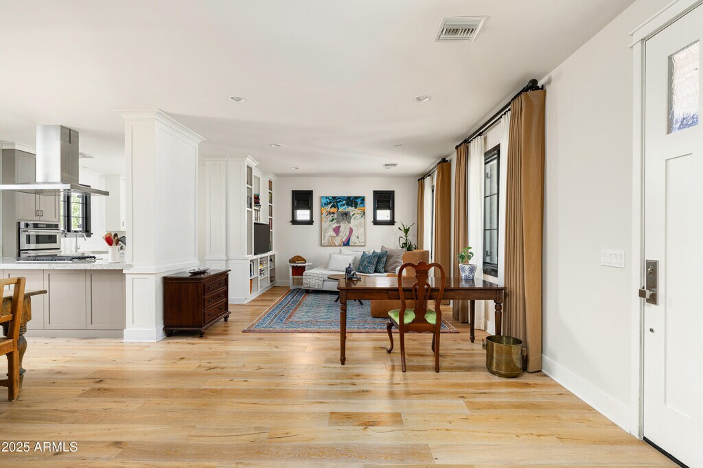 Available for lease in the heart of Arcadia Lite,this stunning 5 bedroom,3 bathroom residence blends modern luxury with relaxed Phoenix living. This home offers over 3,000 sq ft of thoughtfully designed space with soaring ceilings,double-pane windows,and a light-filled open concept anchored by a dramatic great room and sleek gas fireplace. The gourmet kitchen feels truly high-end,with marble counters,premium stainless appliances,and generous cabinetry and pantry space,ideal for everyday living and effortless entertaining. The floor plan provides excellent flexibility with multiple living areas,allowing room for a media space,play area,or sophisticated home office. A spacious primary suite serves as a private retreat,featuring a beautifully finished walk-in shower and closet. The additional bedrooms offer plenty of options for guests,kids,or workspace. Wood flooring underfoot add to the upscale feel,and central air plus ceiling fans keep the home comfortable year-round. Outside,a charming front porch welcomes you home,and the beautifully finished backyard is designed for entertaining,featuring a built-in grill,and low-maintenance landscaping. A detached two-car garage provides secure parking and extra storage,with clean alley access for convenience. Just walking distance from Arcadia's beloved O.H.S.O. Brewery & Distillery on Indian School,along the canal with Camelback Mountain views and a vibrant,dog-friendly patio,you're perfectly positioned to enjoy some of the best dining,bike paths,and neighborhood energy. Quick access to Biltmore,Old Town Scottsdale,and Sky Harbor Airport. This is an exceptional opportunity to lease a luxury Arcadia Lite home that truly checks all the boxes: modern construction,elevated finishes,flexible living spaces,a detached garage,and an unbeatable location near OHSO.