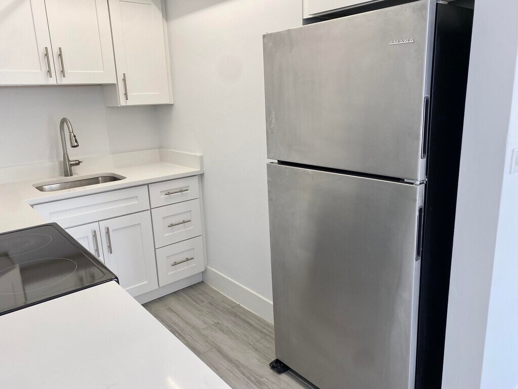 Great location in Coral Ridge! No-HOA and fast approval! JUST 5 MINUTES TO THE BEACH, east of US-1, next to Coral Ridge Country Club, Lauderdale-by-the-Sea beach and many restaurants! First floor corner 1 bed/1 bath unit has been completely renovated - NEW kitchen, bath, floors, fixtures. Good closet space with walk-in closet in bedroom. Located in a quiet small apartment complex with its own sparkling community pool and lounge chairs for relaxing outside! 1 designated parking spot + guest parking available. Pets OK. Easy coin-laundry in the building. Water INCLUDED in rent. Tenant pays electric/cable. I have 2 other identical 1B/1B units available here as well - both corner units on second floor
