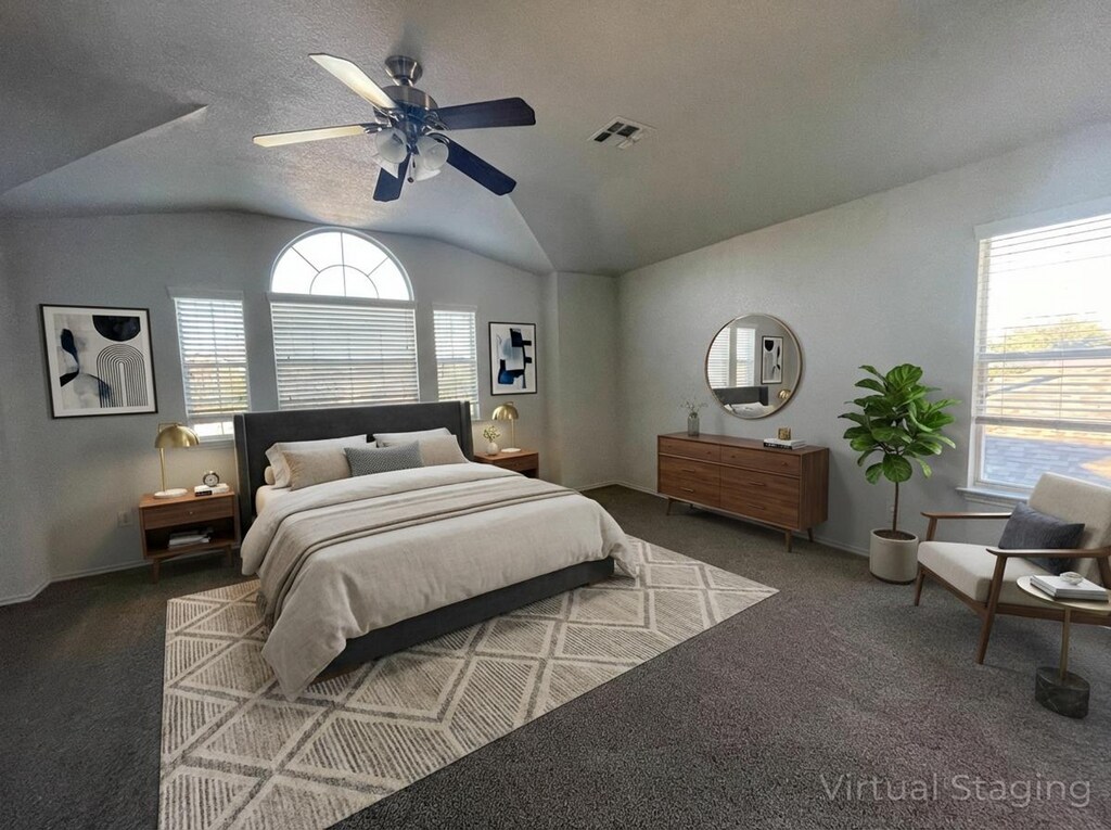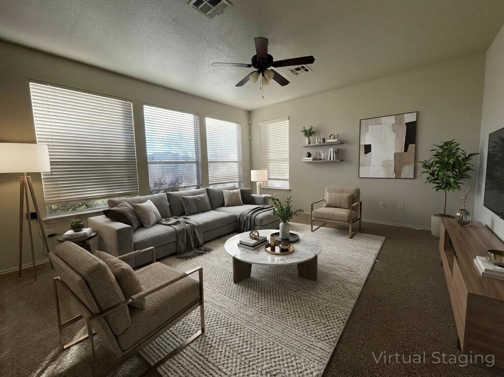 View 360° virtual tour: This beautifully designed two-story single-family home in Killeen offers 4 bedrooms and 3 bathrooms, providing a spacious and functional layout perfect for a variety of living needs. The home features a combination of carpet and ceramic tile flooring, and large windows throughout the home allow for abundant natural light, enhancing the open and welcoming feel. The kitchen is equipped with stainless steel appliances and a convenient pantry. The main floor includes one secondary bedroom and a half bath, providing flexible space ideal for guests, a home office, or added convenience. Upstairs, the primary bedroom features an ensuite bath, and there are two additional secondary bedrooms, a full bathroom, and a versatile loft area. This home also includes a washer and dryer. Enjoy outdoor living with covered front and back patios, a fenced-in backyard, and an attached two-car garage. This pet-friendly home allows pets with a deposit, making it a wonderful option for households with furry companions. Appointments aren't required to tour. Contact us or stop by our Killeen office to learn more and see this home in person once it becomes available! We are located at 1020 W Jasper Drive, Killeen, TX 76542. Disclaimer: The furnishings or enhancements shown are AI-generated and intended for inspiration only. They may not reflect the actual scale, condition, or current features of the property.