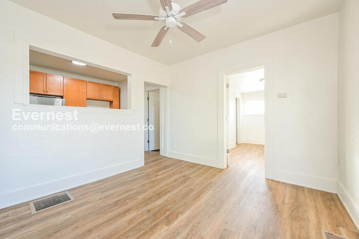 Welcome to this inviting 2-bedroom, 1-bathroom home featuring modern amenities. - Gas range, refrigerator, garbage disposal, and dishwasher included - Forced air and central cooling - In-unit laundry - Hardwood floors - Fenced yard for added privacy - Attached garage for convenient parking Pets: Yes to dogs and cats. Residents are responsible for all utilities. Application; administration and additional fees may apply. Pet fees and pet rent may apply. All residents will be enrolled in Resident Benefits Package (RBP) and the Building Protection Plan which includes credit building, HVAC air filter delivery (for applicable properties), utility setup assistance at move-in, on-demand pest control, and much more! Contact your leasing agent for more information. A security deposit will be required before signing a lease. The first person to pay the deposit and fees will have the opportunity to move forward with a lease. You must be approved to pay the deposit and fees. Beware of scammers! Please contact Evernest Property Management at before leasing. Evernest will never request you to pay with Cash App, Zelle, Facebook, or any third party money transfer system. A prospective tenant has the right to provide to the landlord a portable tenant screening report, as defined in Section 38-12-902 (2.5), Colorado Revised Statutes and If the prospective tenant provides the landlord with a portable tenant screening report, the landlord is prohibited from charging the prospective tenant a rental application fee or charging the prospective tenant a fee for the landlord to access or use the portable tenant screening report. Please note that this is subject to qualification criteria. Contact us to schedule a showing.