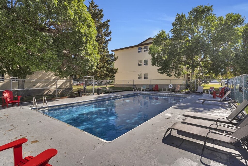 Visit our Website: in the quiet residential neighborhood of Albert Park, but close to the many stores of Harbour Landing and the Regina Airport is only a 5min drive away making this location highly accessible: These apartments are cat-friendly and the large windows provide the perfect spots to sunbathe Enjoy the rustling of the mature trees while walking through the lush green courtyard Summers are so much more enjoyable when you take a dip in the heated outdoor pool Secure entry helps to keep the building secure and safe for residents An on-site laundry room operated by Coinamatic ensures you get your washing done conveniently and efficiently Outdoor powered parking stalls are available for tenants at a monthly rate What's included in your rent Heat Included, Water Included, Parking*, *Outdoor Parking Have Questions? Contact the Property Manager: (3) 58-872