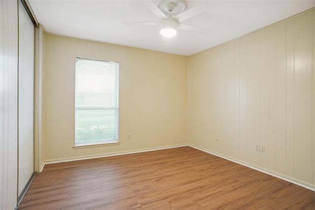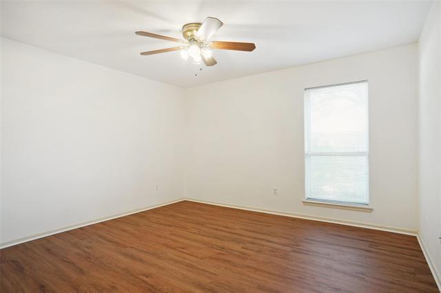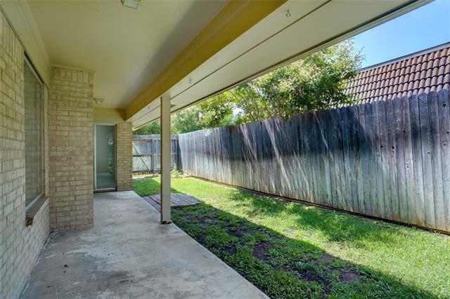 New vinyl plank flooring installed! Updated three bedrooms, two bath duplex. Private courtyard entry, covered patio, mature trees. Large living with laminate floors and wet bar, plantation shutters and blinds. Great kitchen with granite, double ovens, lots of storage and refrigerator. Spacious master offers lovely bath with dual sinks, dual closets, and separate make up vanity. Two other good-sized rooms with nice bath. Nice sized back yard with access from breakfast and master. Quiet neighborhood, corner location convenient to I-20, Chisholm Trail Parkway, SW Medical area & restaurants. All yard care and water included.