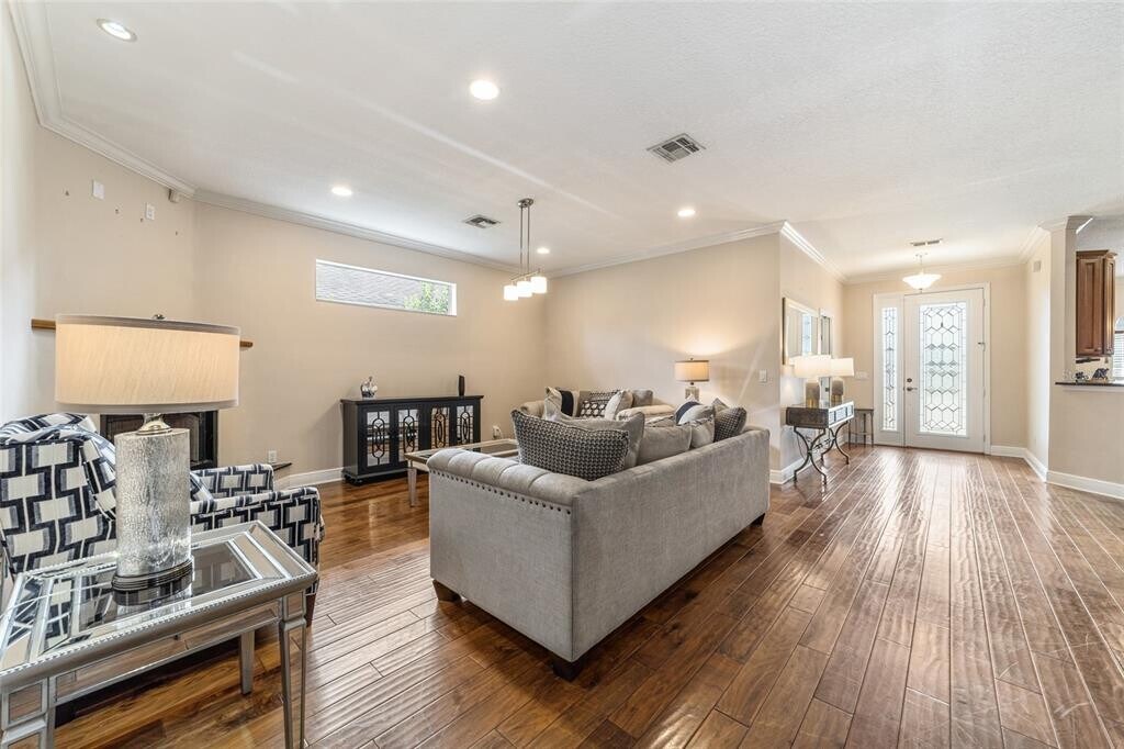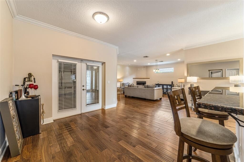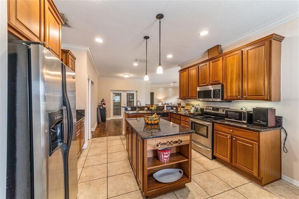 Gorgeous home located in sought-after neighborhood close to schools,restaurants,shopping and health care! This stunning four-bedroom,three-bath home offers an blend of style and convenience.Open floor plan with high ceilings,Mohawk hardwood floors throughout. The gourmet kitchen features a granite island and countertops,upgraded crown molding and ample space for culinary creations. The primary suite has beautiful tray ceilings,high-end crown molding and a spacious custom closet. Through the French doors is fully covered lanai for relaxing and entertaining.Triple-split floor plan is ideal for accommodating a mother-in-law suite,weekend guests,a growing family or even a private office. Move in ready condition,unfurnished. Schedule your showing today! MLS# OM711742