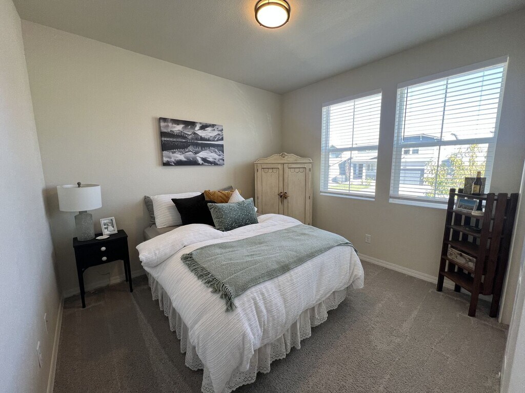 This gorgeous 2024 property is ready for move in! Meticulously landscaped front lawn and covered front porch, grand foyer entry with stunning LVP floors! Warm tones and abundance of natural lighting throughout property! 2 secondary bedrooms with easy access to hall bathroom, upgraded quartz counters throughout home! Open layout common area provides for large living room and gourmet kitchen with large island, stainless steel appliances, walk in pantry and gorgeous cabinetry! Dining area walks out to inviting patio and fenced backyard with breathtaking mountain views! Primary suite features walk in closet and attached full bath with oversized walk in shower and dual vanity! Convenient laundry access and finished garage with epoxy flooring! Located in the Bradley Heights neighborhood with easy access to both Peterson and Fort Carson, hiking trails, native wildlife viewing, Big Johnson Reservoir and Bluestem Prairie Open Space! All that's left is to move in! *Directions may not take you right to home in this new build neighborhood. Look for our 'For Rent' sign in the front yard* 12-18 month lease Security deposit must be paid in certified funds Amount based on credit report findings Allows 2 pets, any weight Management approval needed No aggressive breeds