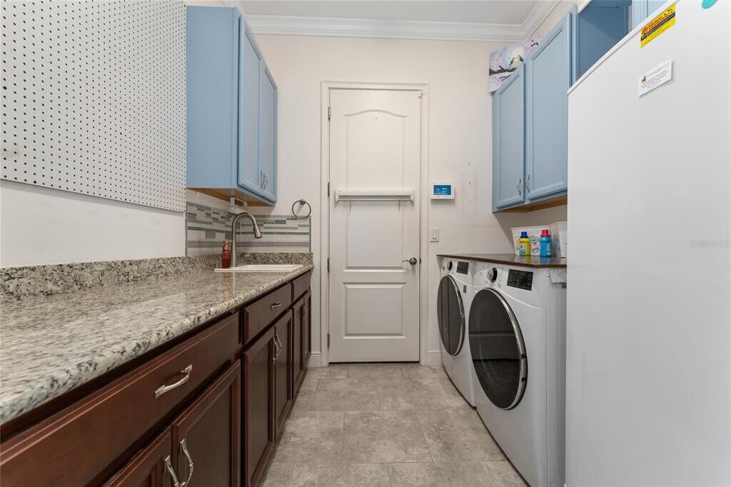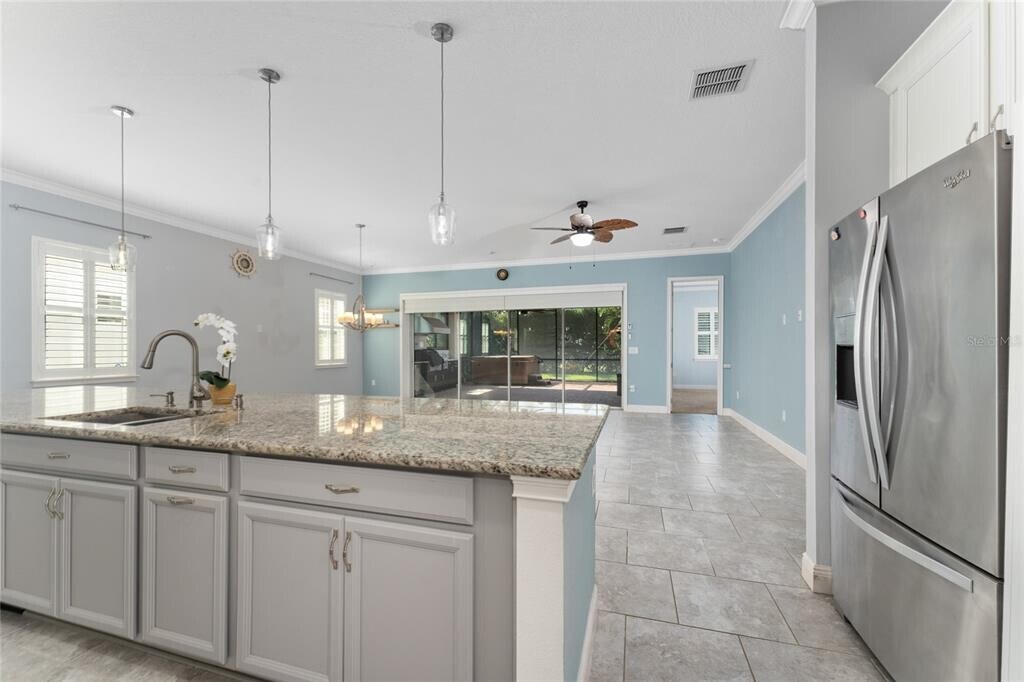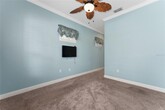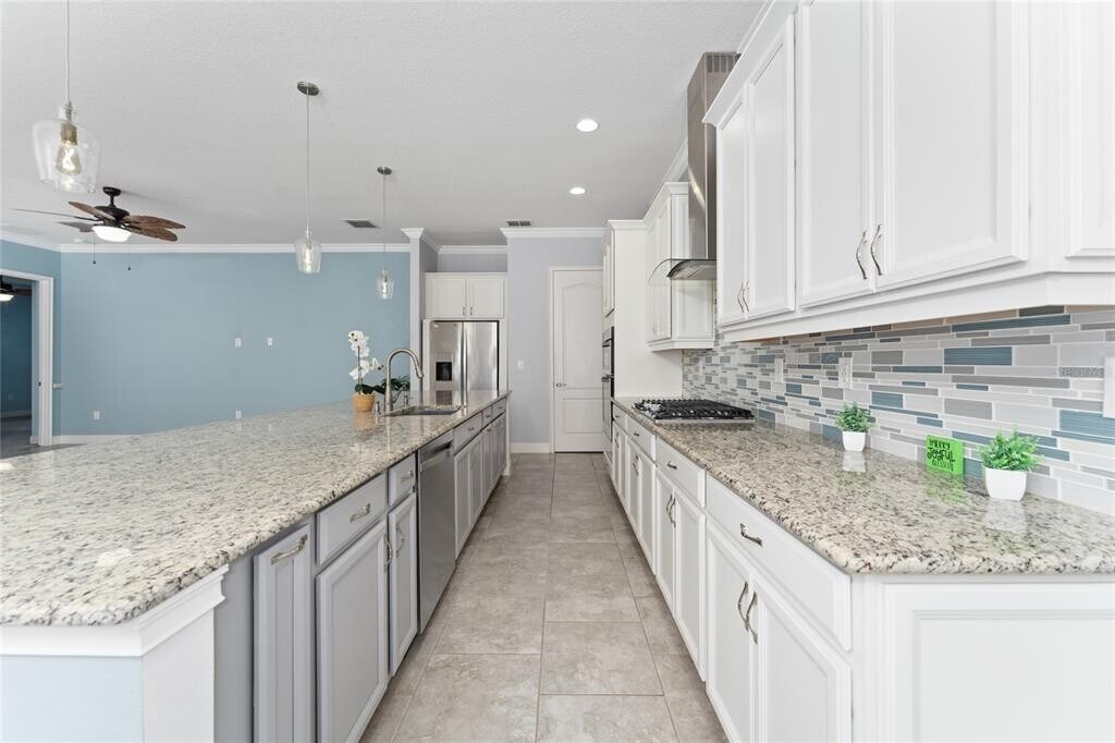 This 3-bedroom 3 bath home has all you need to live that luxurious lifestyle in a master planned 55+ active adult resort style community. As you step into to spacious foyer,you will see an open kitchen with 15 ft. stone island,open living-dining room and full-length glass sliding doors that lead onto a covered screened in lanai complete with custom outdoor kitchen,spa hot tub and privacy hedges. This home also features a fully fenced in back yard and is an extension of the lanai. The Master suite and other 2 bedrooms have carpet; a large on suite bathroom with walk in shower and shower seat,an oversized walk-in closet with custom floor to ceiling shelving where no space is wasted. The 2nd bedroom also has its own on suite bathroom with Walk-in closet and custom floor to ceiling shelving. And an office with built in cabinets,bench,bookshelves and a large desk that can accommodate 2 workstations. The 10' ceiling & open floor plan is full of possibilities with flexible layout,a large walk-in pantry with custom shelving. The gourmet kitchen features a gas cooktop,plenty of pull-out cabinets and additional storage space. The community features a 20,000 sq ft clubhouse,resort style pool,lap pool and much more. Lawn care,exterior water and electricity with a small fee is included in the rent. Solar panels are included MLS# O6337534