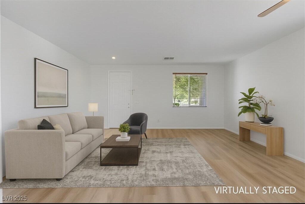TOTAL MONTHLY PERIODIC RENT IS AS ADVERTISED-NO ADD ONS!(Including Solar Panels,sewer & trash service)Come see this beautiful home situated on an oversized corner lot!Featuring brand new luxury vinyl plank flooring downstairs and fresh interior paint,this home is move-in ready. The kitchen boasts an island, all appliances included, and a spacious walk-in pantrybig enough to fit a refrigerator(included!). Upstairs offers a large loft, a spacious primary suite, and oversized secondary bedrooms. Enjoy energy-efficient living with a 2-year-old solar system included in rent, radiant barrier roof to help keep heat outside.The backyard is low-maintenance with turf and a full-length patio cover.Neighborhood has a gorgeous community park! Don't miss out on visiting the Tule Springs Fossil Beds National Monument just over a mile away! Shopping, dining and entertainment located nearby!Don’t miss this exceptional value! One small dog would be acceptable with a pet deposit and pet rent of $50/mo.