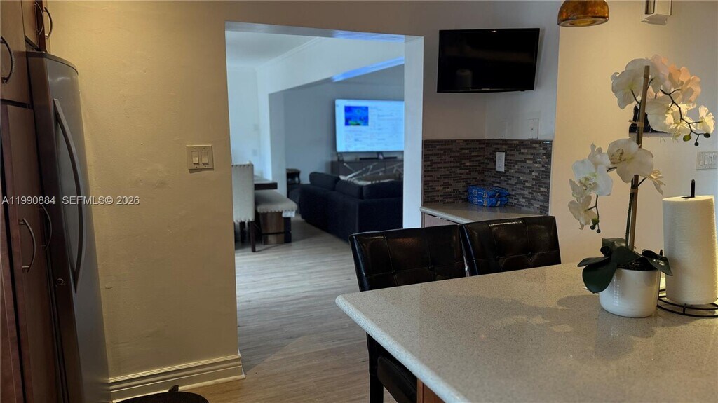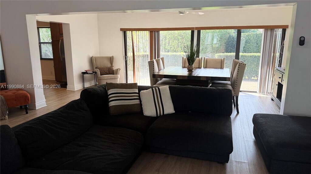 Welcome to this stunning 3-bedroom, 2-bathroom single-family home in the Woodlands community of Tamarac! Perfectly positioned on a corner lot with convenient access to the Florida Turnpike. Step inside to discover a spacious open floor plan where the family and dining areas flow seamlessly, creating an inviting atmosphere perfect for both everyday living and entertaining. A standout feature is the elegant glass wall office space, which is ideal for remote professionals, online entrepreneurs, or anyone seeking a sophisticated dedicated workspace. The home features a beautiful kitchen with a center island, elegant wood soft-close cabinets throughout, and stainless-steel appliances including a double oven, dishwasher, refrigerator, and separate freezer. Peace of mind comes standard with hurricane impact windows and doors throughout. The outdoor space provides beautiful open patio surrounded by manicured landscaping and tropical palm trees. Located in the family-friendly Woodlandscommunity with easy turnpike access, you'll enjoy quick commutes to Fort Lauderdale, Miami, and beyond. MLS # A11990884