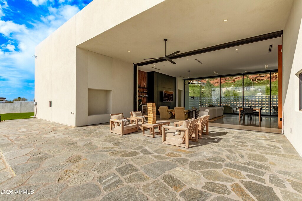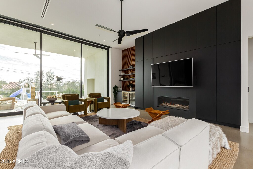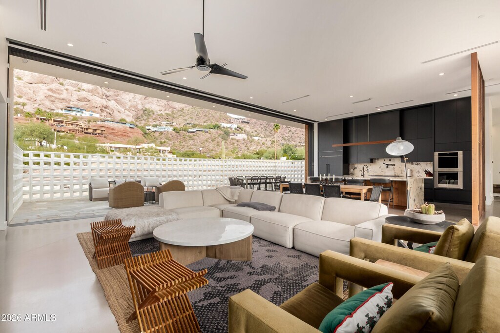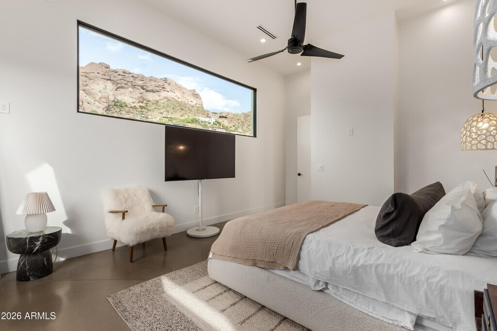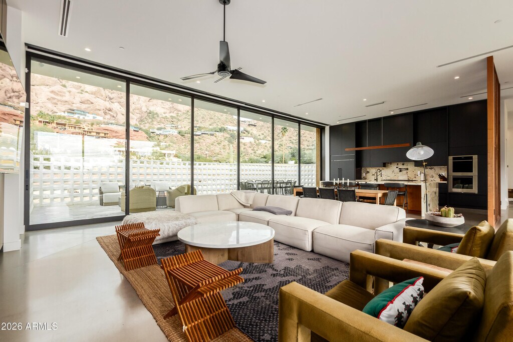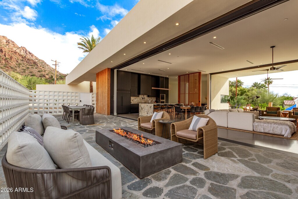 Available April 1st - Camelback Mountain Contemporary with Room for Kids to Play! This 4,525 sq ft Arcadia home,built in 2022,offers generous space for both family living and effortless entertaining. Anchored by an open-concept split bedroom floorplan,the residence features 4 bed,5 baths,a dedicated office,and a versatile kids' loungeproviding plenty of room for everyone to spread out. A thoughtful split-bedroom layout ensures privacy,while the design seamlessly blends the historic neighborhood's mid-century modern roots with clean contemporary lines and functional spaces. Situated on a full acre,this property delivers exceptional outdoor living space with breathtaking mountain and city views. The expansive backyard includes a heated/chilled swimming pool and spa,multiple patios,stylish lounge areas,and inviting fire pits- all while still offering ample grass and turf area for play and relaxation.