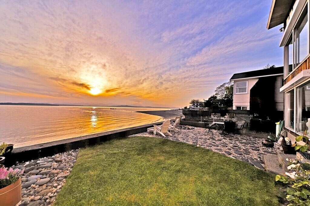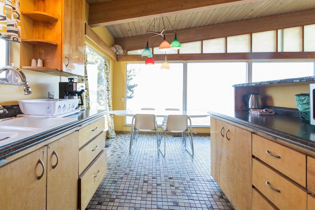 Experience the charm of West Seattle with this rustic mid-century house, just a short walk from the waterfront saltwater beach. This home offers a unique opportunity to collect shells, dig clams, and fish from the bulkhead. The patio, furnished with chairs and tables, provides a perfect spot to soak in the sweeping waterfront views and enjoy meals outdoors until 10pm. Large windows in the living and dining rooms fill the space with natural light and stunning views. This original mid-century modern beach house offers a cozy and inviting atmosphere. The patio and yard are fully furnished, making it easy to relax with friends or family. The kitchen retains its original charm, providing everything needed to whip up a meal. A laundry room is conveniently located in the basement. Nestled in a serene location, this home offers the perfect blend of peace and convenience. A private lane ensures security and tranquility, while nearby conveniences include the Thriftway Grocery Store and Caffe Ladro, just a 15-minute walk away. A bus line, only a 5-minute walk from the house, provides easy access to Downtown Seattle. The property maintains a strict no-smoking, no-pets, and no-parties policy, with quiet hours after 10pm. The patio is for guests only and is open until 10pm. Fires and children are not allowed on the patio due to safety concerns. Recycling is mandatory as the City of Seattle fines for non-compliance. Shoes are not allowed inside the house, and the white couch should be covered if eating or drinking. An electronic lock or lockbox is available for entry, with codes provided 48 hours prior to check-in. Guests are expected to treat the home with respect, as it is not a hotel but a personal residence. [SI]