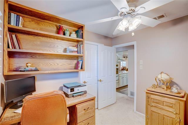 Welcome to this warm and inviting 3-bedroom, 2-bath home, ideally situated on a spacious, tree-shaded lot that backs to a tranquil greenbelt. From the moment you arrive, you’ll feel the charm and character this property has to offer. Inside, the open-concept living area is filled with natural light and enhanced by classic plantation shutters throughout. The updated kitchen features granite countertops and modern appliances including refrigerator, and it flows effortlessly into the living and dining areas, ideal for hosting or relaxing in style. A striking Chicago brick fireplace wall adds warmth and architectural character, while a spacious walk-in pantry ensures ample storage. The oversized primary suite offers a peaceful retreat, complete with a cedar-lined walk-in closet and a large ensuite bathroom with dual sinks. Step outside onto the expansive deck, surrounded by mature trees that create a private and serene outdoor escape. Two storage sheds provide additional space for tools, hobbies, or seasonal items. Located within the highly regarded Birdville ISD and offering convenient access to major highways, shopping, dining, and more, this home blends thoughtful updates, a 2-car garage, and a beautiful natural setting to deliver a lifestyle of comfort and convenience.