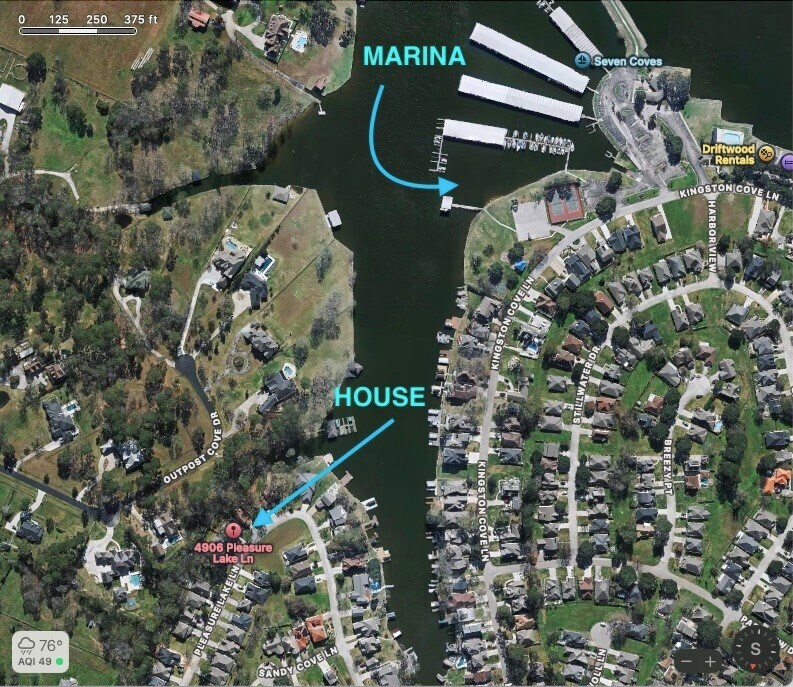 Time and distance from 4906 Pleasure Lake Ln.