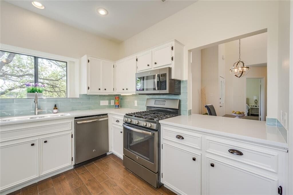 Prime Cat Mountain location with gorgeous Hill Country Views!! Beautifully updated throughout...flooring, quartz countertops, stainless steel appliances, and both baths tastefully remodeled. Garage with opener, indoor utilities, soaring ceilings on bath floors. Master suite with vaulted ceiling, built-ins, and huge windows with views. Privacy fence with massive stone columns and an iron gate, a terraced backyard with multiple outdoor living areas, and beautifully manicured oak trees. This is a rare opportunity to rent something you would be proud to own, with once-in-a-lifetime views. Lawn care, tree trimming, and bug services are included in the rent.
