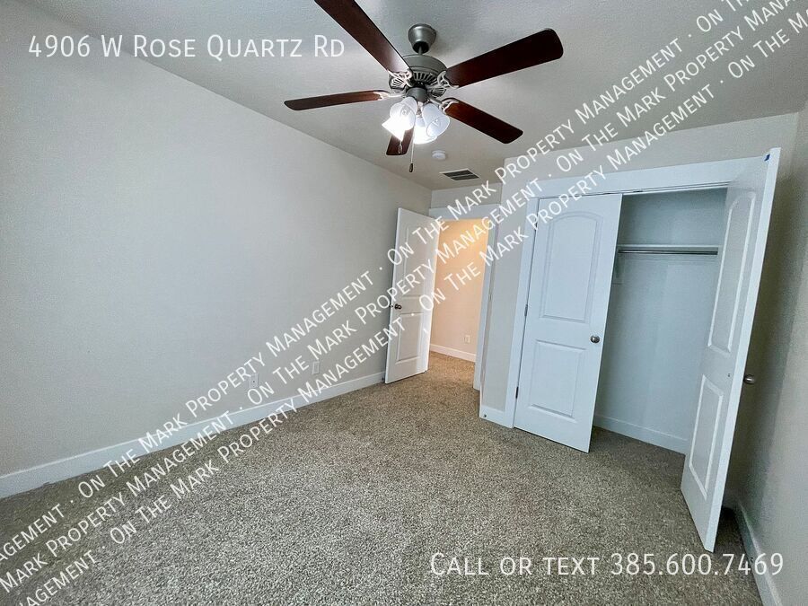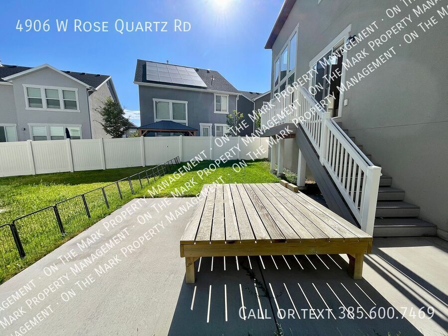 Pet Friendly-Spacious Home in Herriman Available Now Mountain Heights Community 4906 W Rose Quartz Herriman, UT 84096 4 Bedroom/ 2.5 Bathroom/ Den/ Loft 3105 Sq. Ft. 2016 Year Built $2,795 Rent - monthly $2,795 Deposit (oac) $105 Amenities Package - monthly (Covers a portion of the HOA amenities, Water, Sewer, and Garbage ) $45 Resident Benefits Package (Required, renters insurance encouraged) PET FRIENDLY Application fees $50/adult Lease Initiation $150 6 - 9 Month Lease (12 month renewal) Applications at On The Mark Rentals Website: onthemarkrentals dotcom Pet policy is under Resident Resources: onthemarkrentals dotcom/pet-policy/ ***ABSOLUTELY NO SMOKERS OR VAPERS*** Imagine enjoying an afternoon out with friends shopping at nearby Mountain View Village, then return home for dinner in your stunning kitchen featuring quartz counters and NEW high end refrigerator. If you desire water purity, this is the home for you! This home boasts a water softener, whole house blue light filter, and instant filtered hot water in the kitchen! Enter from the peaceful front porch, past th formal living room, to find a vaulted great room filled with natural light from soo many windows! There's even a half bath and large coat closet right outside the 2-car garage. Walk up the beautiful open staircase to your spacious primary bedroom with ensuite bath featuring double sinks and separate soaking tub and shower, 3 more bedrooms, a full bath, laundry, and an open loft! The large unfinished basement provides plenty of storage! This beautiful home is conveniently located right off Rosecrest and Mountain View Corridor, and less than 3 miles from all the shopping/dining/entertainment at Mountain View Village, parks, churches, and schools. High end fridge and washer/dryer included. PROFESSIONALLY MANAGED means a LOT for you!!! With everything done online (application, lease, rent payments, repair requests, etc), meeting up with the owner just to pay your rent is a thing of the past! Any needed repairs are done quickly by licensed professionals, so you won't be waiting for an owner to "fix" it, repeatedly. Security deposits are held in a trust account, with dispositions handled promptly and fairly after you move out, so you don't have to wonder if you'll ever get it back. Here, you can have confidence that everything is being handled in a professional manner. Schools: Jordan School District: Foothills Elementary, Fort Herriman Middle School, Mountain Ridge High School. - Tenant pays: Gas, Electric, and Amenities. - Amenities Package includes: Common Area Maintenance, Water, Sewer, and Garbage - Resident Benefits Package: Renters Insurance, Furnace Filters, Credit Building, Identity Guard, and Credit Building All On The Mark Property Management residents are enrolled in the Resident Benefits Package (RBP) for $44.95/month which includes liability insurance, credit building to help boost the resident's credit score with timely rent payments, up to $1M Identity Theft Protection, HVAC air filter delivery (for applicable properties), move-in concierge service making utility connection and home service setup a breeze during your move-in, our best-in-class resident rewards program, and much more! More details upon application. ***ABSOLUTELY NO SMOKERS OR VAPERS*** ***Application Instructions: Go to On The Mark Rentals Website and fill out an application for each adult*** NOTE: Your application will be reviewed. If we both decide to proceed with the application, Credit and Background screenings are required for all prospective tenants over 18 years old. There is a $50 fee per screening. The $150 lease initiation fee is one time and only upon signing of lease. IMPORTANT - Deposit and Rent are due BEFORE Move-in. Contact Mark Cheney with any questions. Professionally Managed by On The Mark Property Management