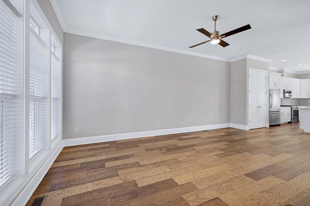 Stunning 3 bedroom, 2.5 bathroom home includes high end finishes as well as the convenience of a 2 car garage. The main level features spacious family room and dining room with hardwoods as well as a huge gourmet kitchen with quartz countertops and plenty of cabinet space. Upstairs, find the primary bedroom featuring a large walk in closet and luxurious bathroom. Down the hall, find 2 secondary bedrooms. On the lower level, find an additional living space great for a bonus room or office. Conveniently located just minutes from I-40, I-440, and downtown Raleigh this home is located in an unbeatable location.