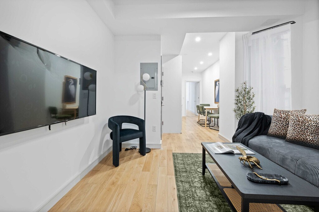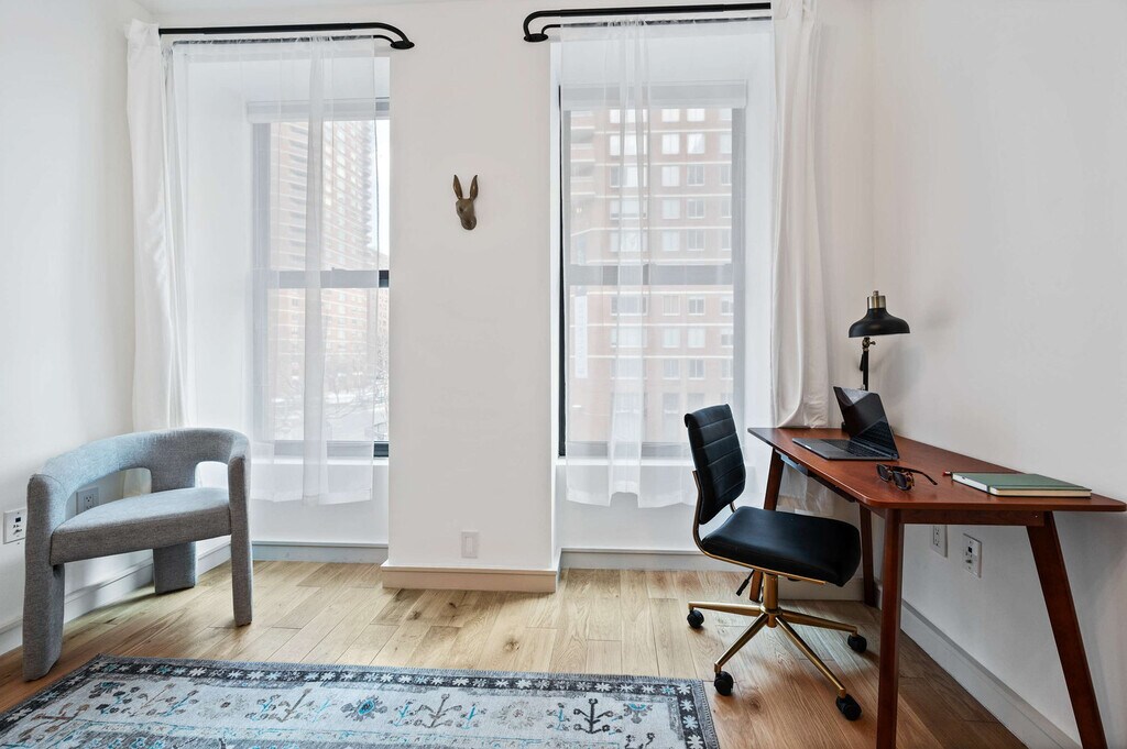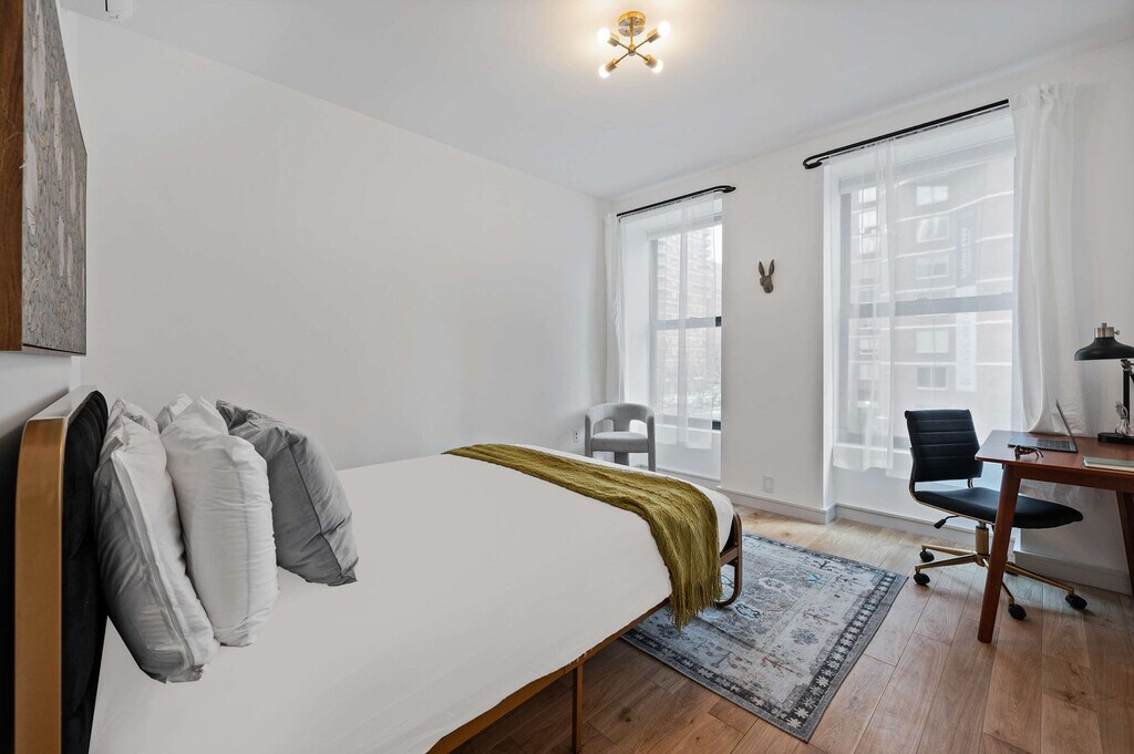 This is a great opportunity to live in one of the best neighborhoods in Manhattan, near Nomad, Union Square, and Gramercy Park. The apartment features two bedrooms that comfortably accommodate a queen bed, an office chair, and a large desk. Recently renovated, everything is brand new, and there are also two full bathrooms and generous closet space. Enjoy a quiet and comfortable stay with thoughtful touches to enhance your experience, such as two 50" flat-screen TVs, luxurious linens, plush towels, and a fully stocked kitchen featuring a refrigerator, oven range, microwave, and coffee maker. There's also a hairdryer and an iron/ironing board available. The apartment provides free high-speed wireless internet, allowing guests to easily work from home and stay connected during their stay. A one-time pet fee of $415 applies. Laundry facilities are available down the building. Nearby attractions include Trader Joe's, AMC, and Fairway. For transportation, the bus is on 2nd Ave, and the 28th Street Station (number 6) is easily accessible. There's also a bike lane on 2nd Ave. The apartment provides free high-speed wireless internet, allowing guests to easily work from home and stay connected during their stay.