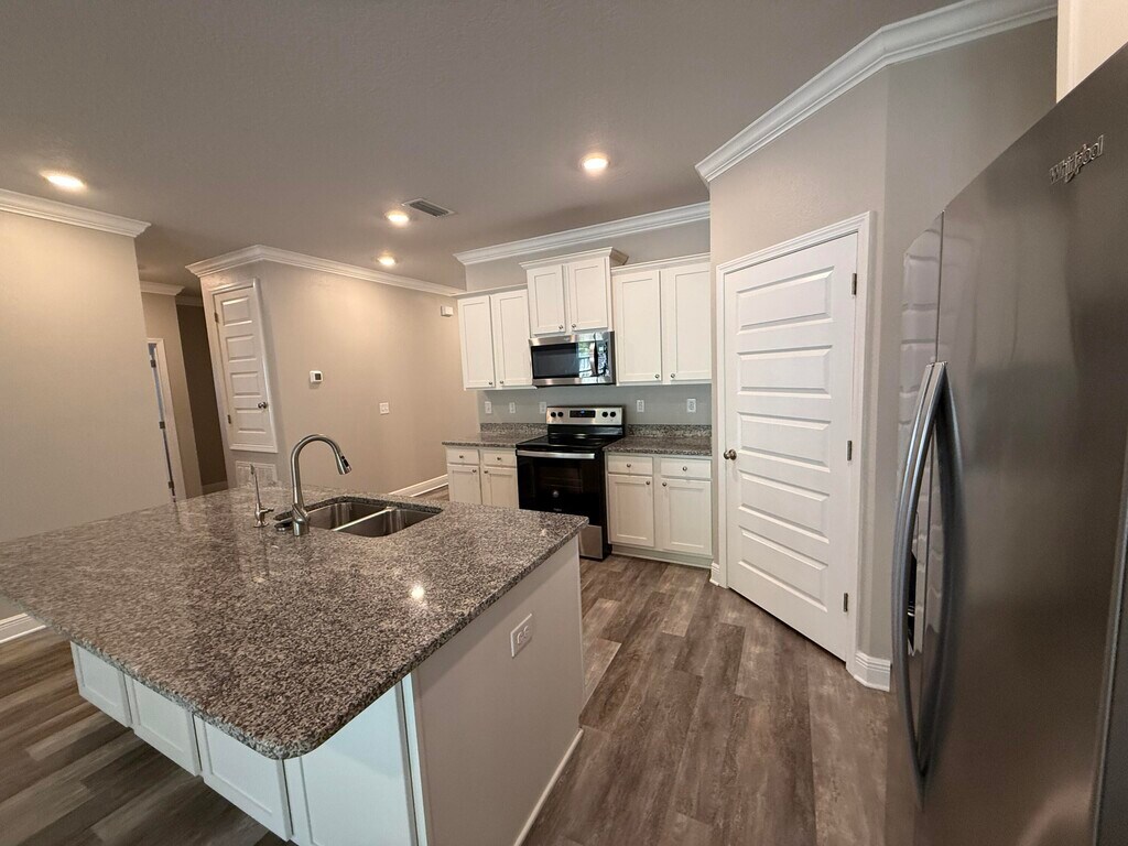 Welcome to your lovely home in the beautiful Hammock Bay community! This delightful 3 bedroom, 2 bath residence features elegant 9' ceilings, EVP flooring throughout the common areas, and cozy carpet in the bedrooms. You'll love the modern stainless steel appliances, and the convenience of a washer and dryer, all with fresh new paint! Enjoy the perks of lawn care, Directv, and garbage collection included. Embrace the vibrant community with multiple pools, pickleball, tennis and basketball courts, plus plenty of scenic walking trails to explore. Don't miss out - see it today, it won't last long! Just a friendly reminder, no pets allowed!