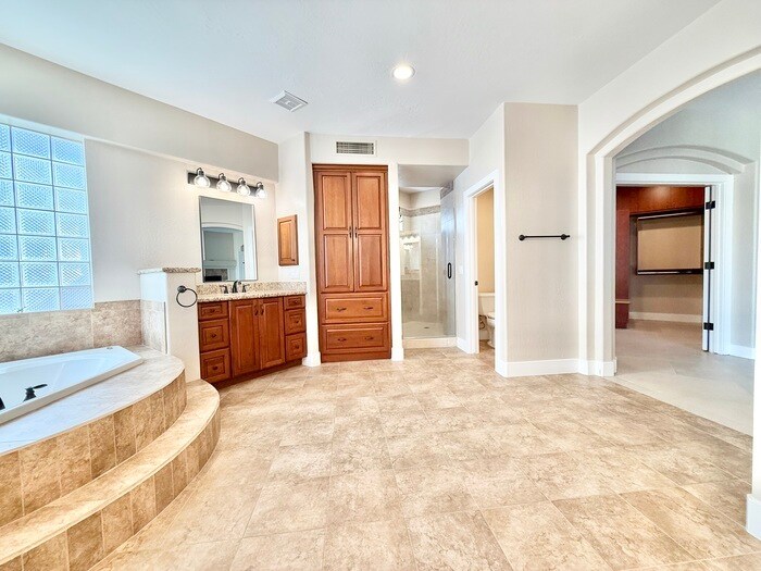 CALL TO SCHEDULE A SHOWING or for SELF GUIDED TOUR PLEASE DOWNLOAD RENTLY MOBILE APP AND FOLLOW STEPS. POOL, SPA, OUTDOOR KITCHEN Gorgeous 4 Bedroom 2.5 Bathroom Home is immaculate and upgraded with NEW Air Conditioning Units and SOLAR PANELS providing low cost power. Gourmet chef kitchen with gas cooktop, double ovens, and island sink all overlooking the family room and resort backyard. Master suite with spa bath and huge walk in closet is located on first level. 2nd level has 3 additional bedrooms and a Very large game/media/bonus room. Private backyard which is adjacent to ''natural area'' is a Paradise Retreat. Outdoor kitchen, pool, spa, dog run, and several seating areas with mature landscaping. Gorgeous pool is equipped with 2 water features, heater and chiller, baja shelf for sunning or kids wading area, and built in umbrellas. Pool Service Included Solar Panels Smoking: No Year Built: 1998 Lease Terms: 12 Months Deposits: $4,475.00 This property allows self guided viewing without an appointment. Contact for details.