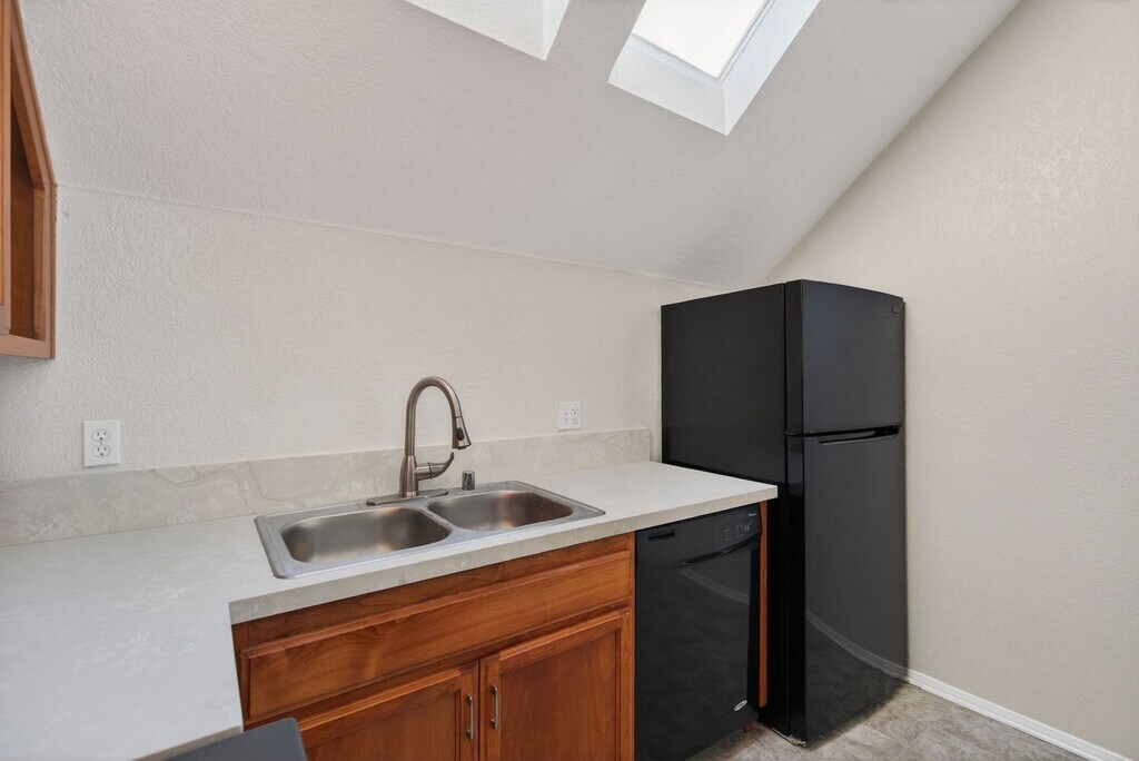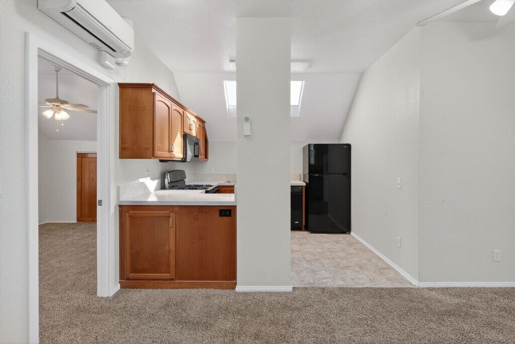 Welcome to this charming upstairs unit located in a well-maintained duplex. Offering approximately 700 square feet of living space, the home feels bright and open with vaulted ceilings and abundant natural light throughout. Recent upgrades include new flooring, and new kitchen countertops, giving the home a clean and modern feel. Upon entry, you’re welcomed into an open living area that flows seamlessly into the kitchen, creating a comfortable and functional layout. The kitchen is enhanced by skylights and comes fully equipped with a refrigerator, stove/oven, microwave, and dishwasher. The spacious bathroom offers ample countertop space, providing both comfort and practicality. An in-unit washer and dryer add everyday convenience and make the home truly move-in ready. Additional features include HVAC for year-round comfort, on-site parking, a dedicated storage shed, and access to a shared outdoor space. Ideally situated near public transportation, the property offers convenient access to Downtown Riverside, Riverside Plaza, shopping, dining, entertainment, and major commuter routes.