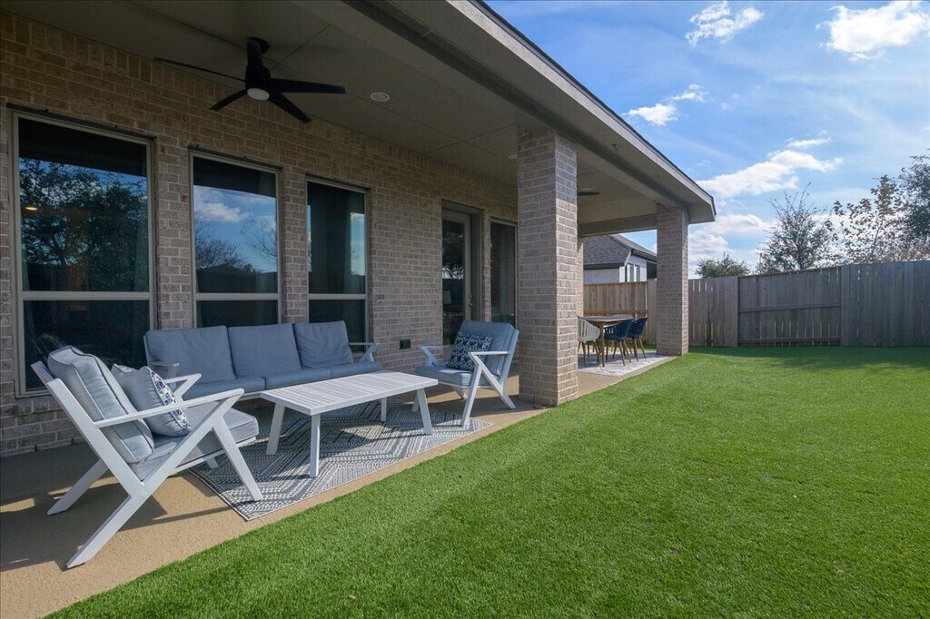 Welcome to this beautiful 4-bedroom,3-bath home plus a dedicated office in the sought-after Meridiana community in Manvel. This spacious one-story home features an open,light-filled layout with a large kitchen island,walk-in pantry,and seamless flow into the living and dining areas—perfect for everyday living and entertaining. The covered patio opens to a fully turfed backyard and side yard,offering a low-maintenance outdoor space ideal for relaxing or hosting guests. Residents enjoy access to wonderful schools,exceptional community amenities,including parks,trails,pools,and more,along with convenient access to Hwy 288,H-E-B,Manvel Town Center,shopping,and dining. MLS# 51528269