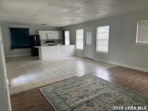 Easily can be a 3 bedroom in the second living area. Window ac unit in the living area with heat/air. Open floor plan. Large yard. Convenient to Ft Sam and Randolph. Shopping close by. refrigerator included