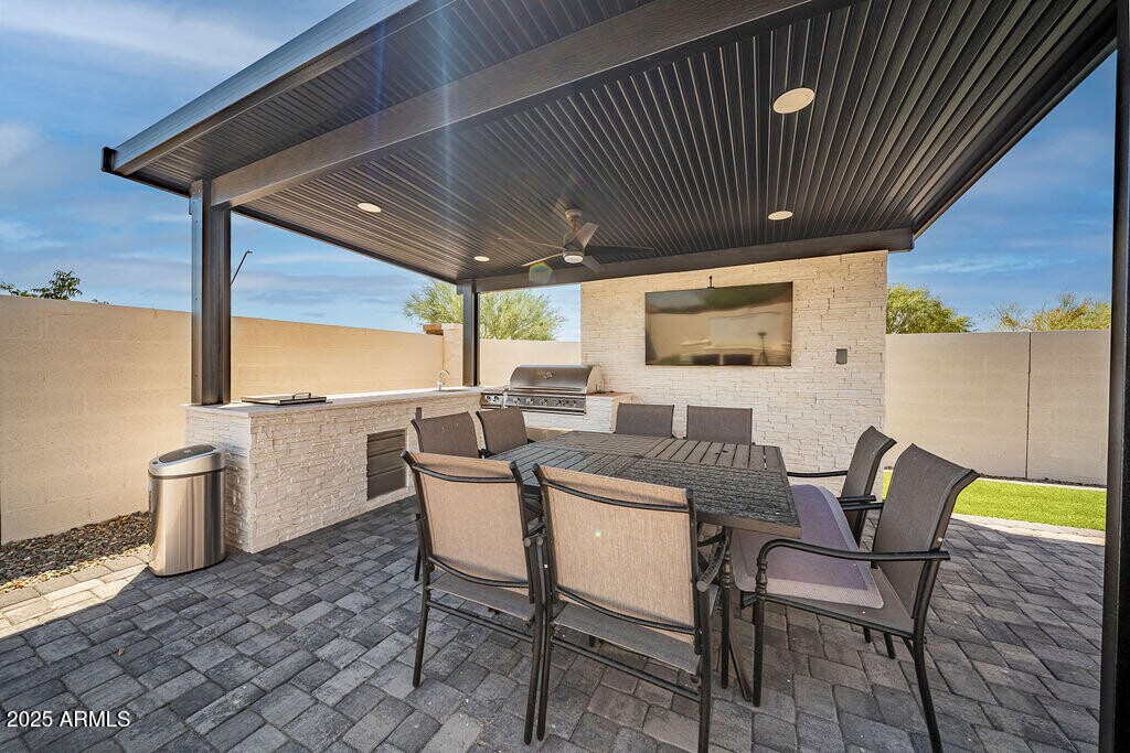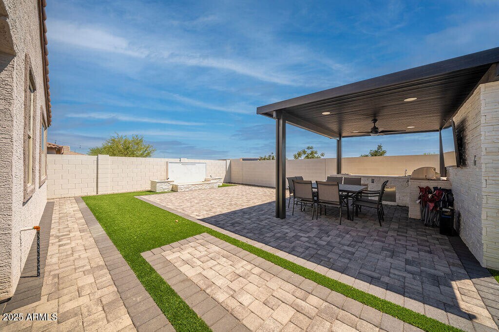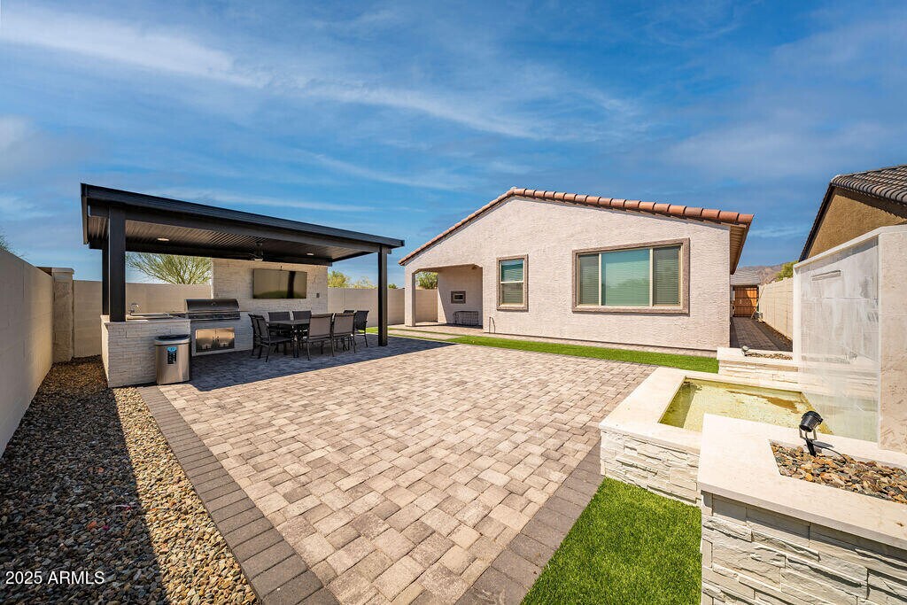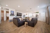 single-story home features a modern open-plan layout among the Great Room,kitchen and dining room. A secluded secondary bedroom at the front of the home is ideal for overnight guests. Two additional secondary bedrooms near the Great Room offer restful retreats for family members. A luxe owner's suite is situated at the back of the home,just off a hall with a door to the covered patio and full landscaping with outdoor kitchen.